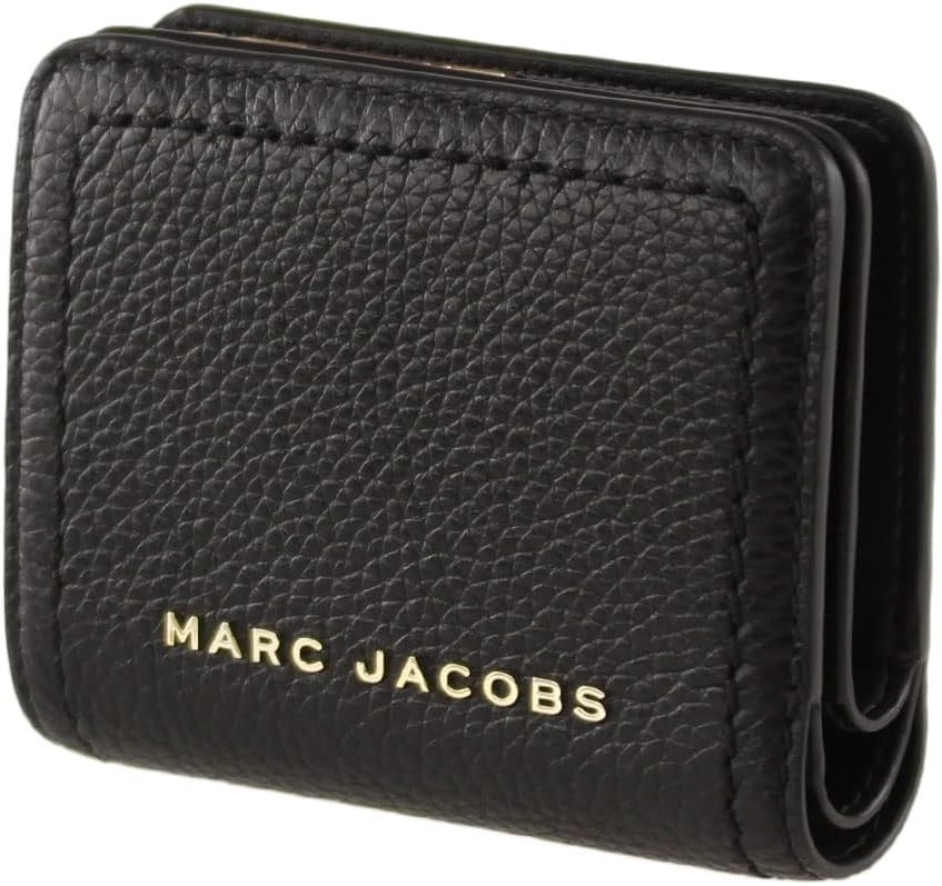Marc Jacobs S101L01SP21 Black With Gold Hardware Top Stitched Compact Zip Women's Leather Wallet