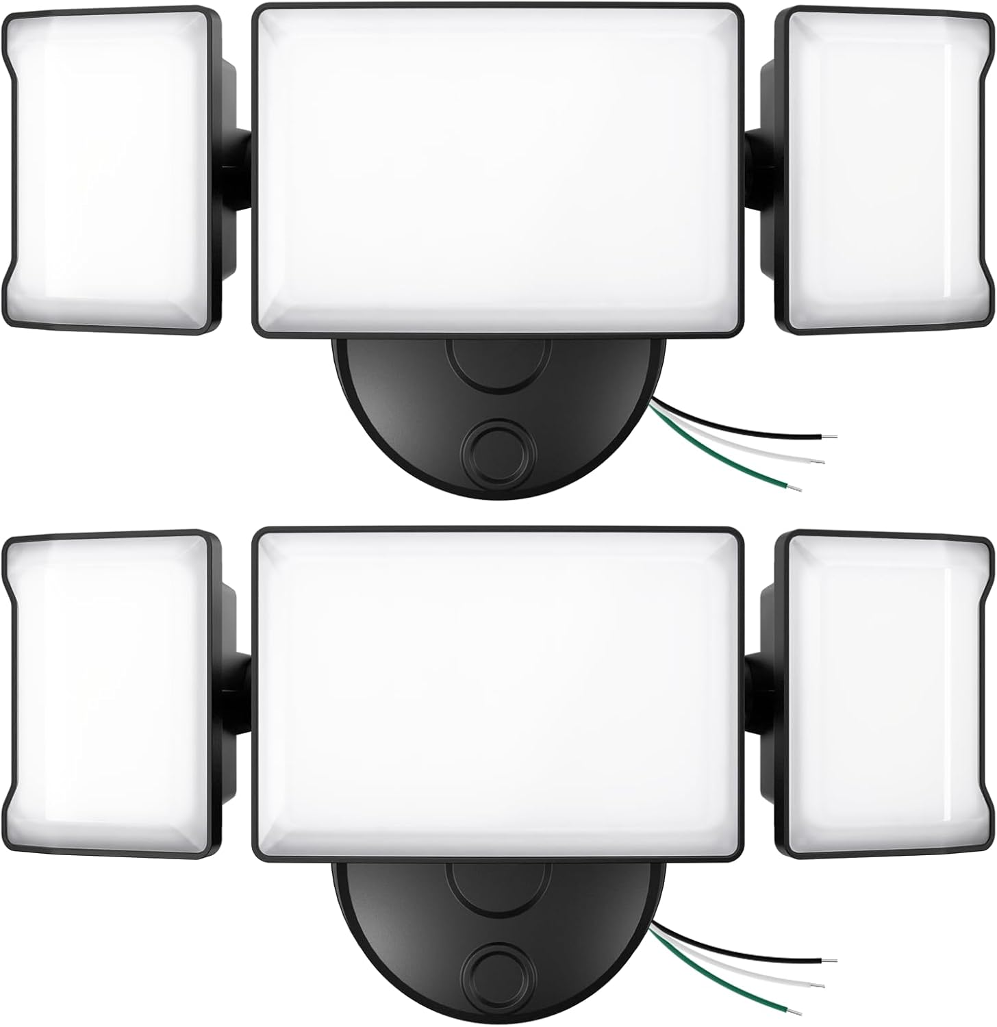 Olafus 60W Flood Lights Outdoor 2 Pack, Switch Controlled LED Security Lights 6000LM, 6500K Outside Floodlight, IP65 Waterproof Exterior Light Fixture for House, Yard, Garage, Wall/Eave Mount Black