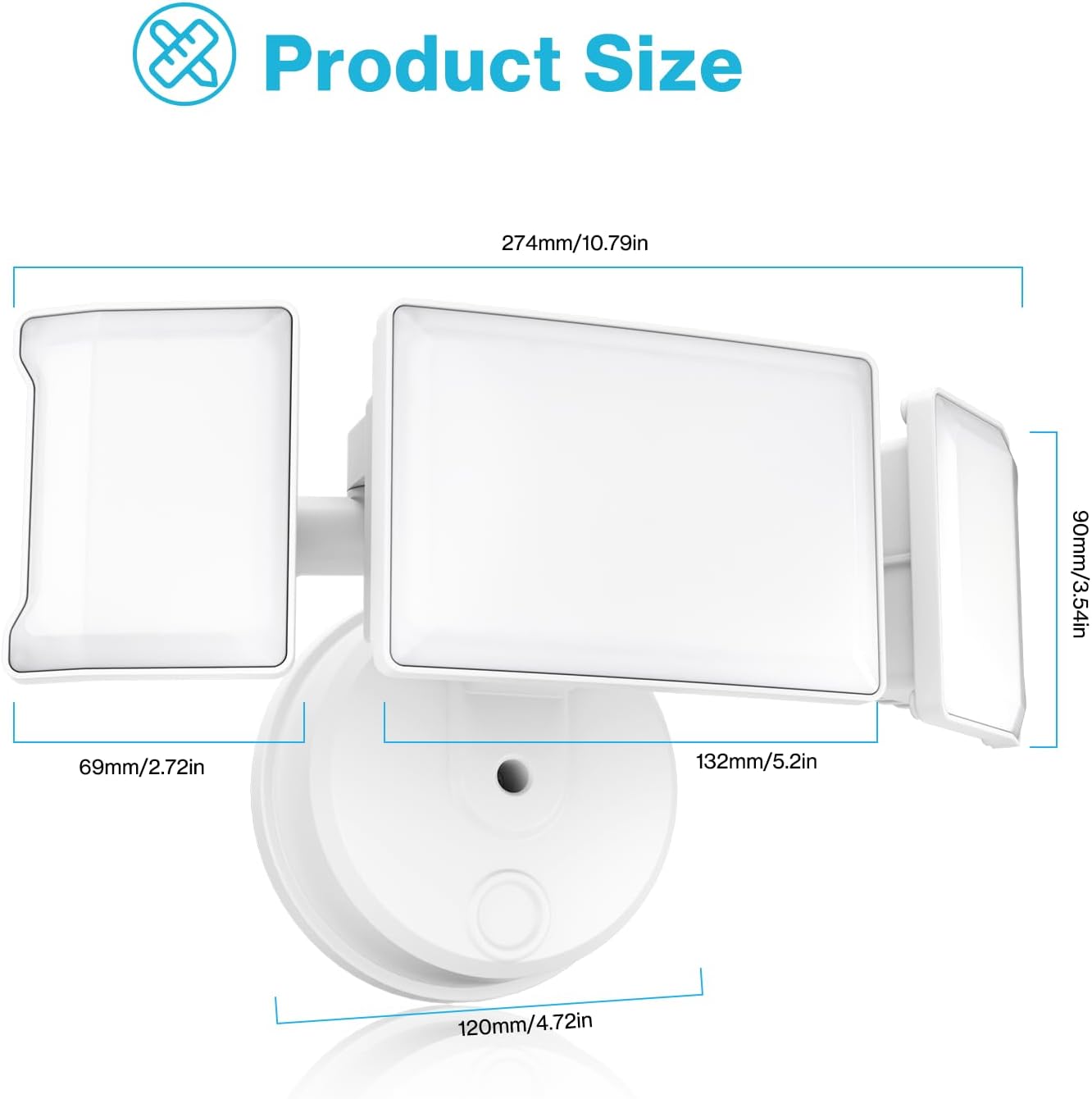 Expansive Lighting Coverage: Featuring three adjustable heads, this flood light allows for versatile lighting direction, ensuring a wide beam angle of 120°. With the capability to brighten an area up to 1150 ft², it's ideal for large outdoor spaces