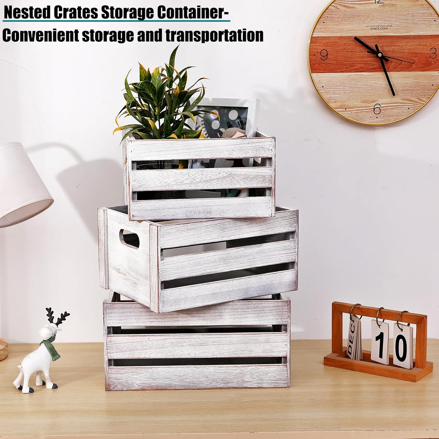 Storage Crates 3 Pcs Wooden Crates Decorative Boxes,Nesting Storage Container Rustic White,Boxes for Storage, Display,Decor