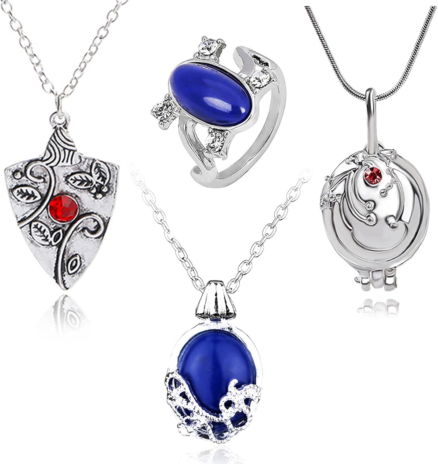 4 pcs Vampire Jewelry Daywalking Katherine Sapphire Elena Gilbert Opening Vervain Locket Bonnie Necklaces Elena Sapphire Crystal Daylight Ring Jewelry Set Cosplay for Fans