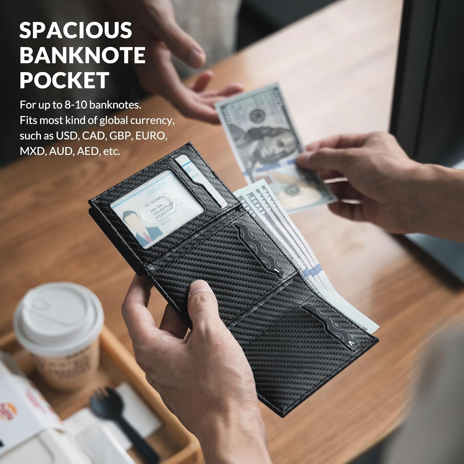 Cartera con Soporte para Tarjetas VULKIT con Bolsillo para Monedas Cierre Magnético Ventana para ID Cartera de Cuero con Ventana para Tarjetas