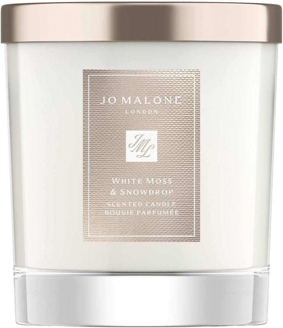 Jo Malone London White Moss & Snowdrop Scented Candle 200g. What it is: A limited-edition candle that will fill your home with the wintry scent of white moss and snowdrops. Fragrance story: Snowdrop petals peeking through powdery snow, greeting forest-fresh moss, iridescent under winter sunlight. Create a luminous atmosphere with a smooth and crisp scent. The candle was crafted in the British countryside with a frosted design. 45-hour approximate burn time.