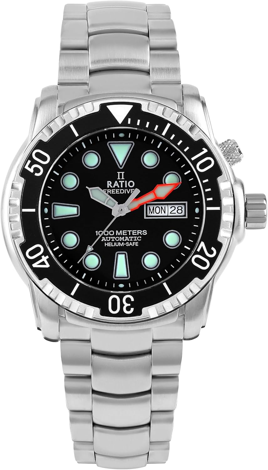 RATIO FreeDiver Helium-Safe Dive Watch Sapphire Crystal Automatic Diver Watch 1000M Water Resistant Diving Watch for Men