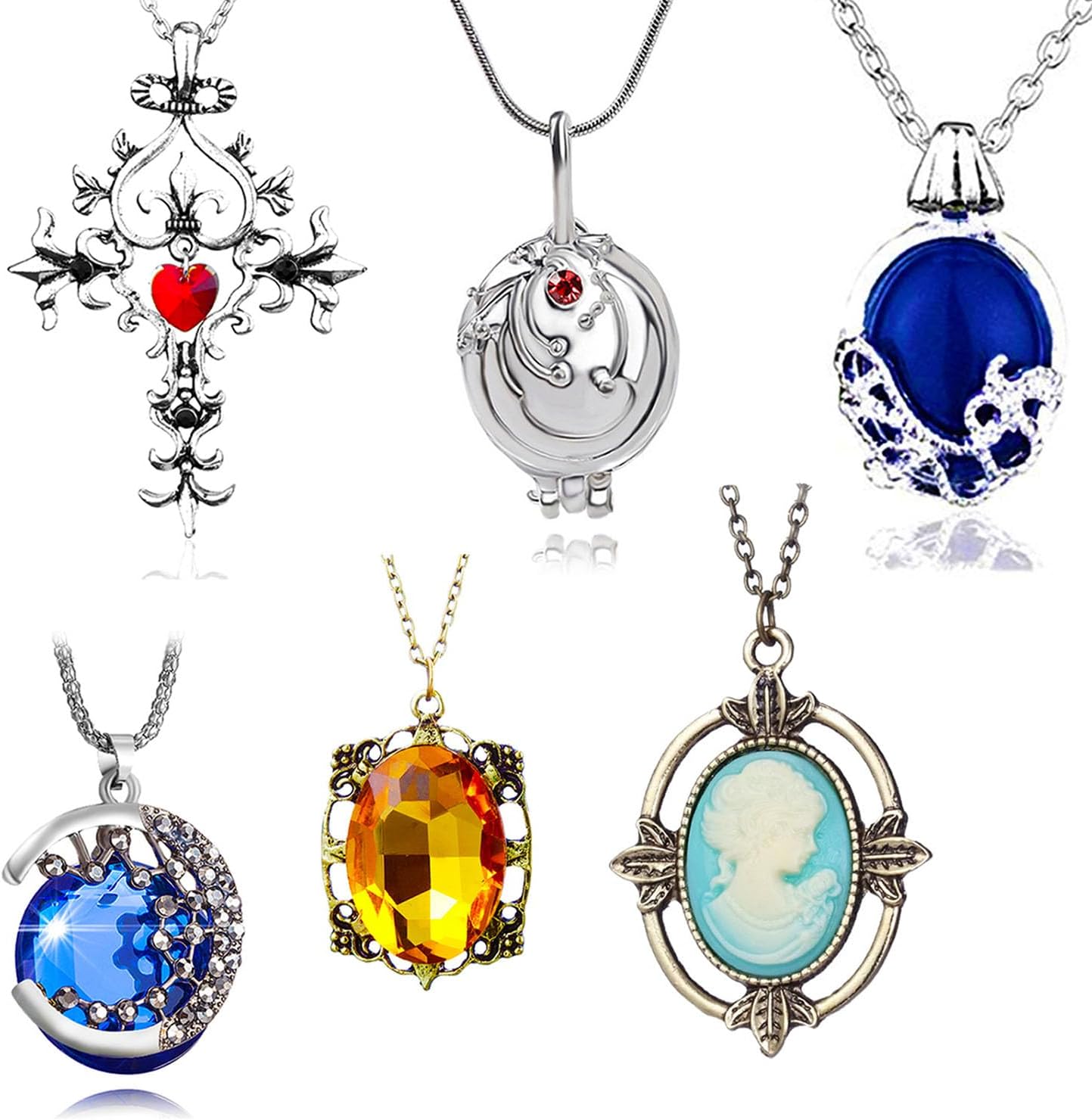 UoYu The Vampire Diar.s Jewelry Set Elena Gilbert Opening Vervain Locket Katherine Daywalking Sapphire Crystal Necklaces Bennett Bonnie Antique Silver Amulet Necklace with Stickers 26 pcs