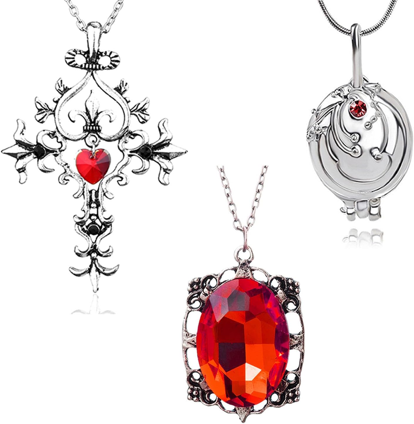 UoYu The Vampire Diar.s Necklace Set Vampire Cross Symbol Necklace Elena Gilbert Opening Vervain Locket Necklace Bennett Bonnie Amulet Necklace with Stickers 23 pcs