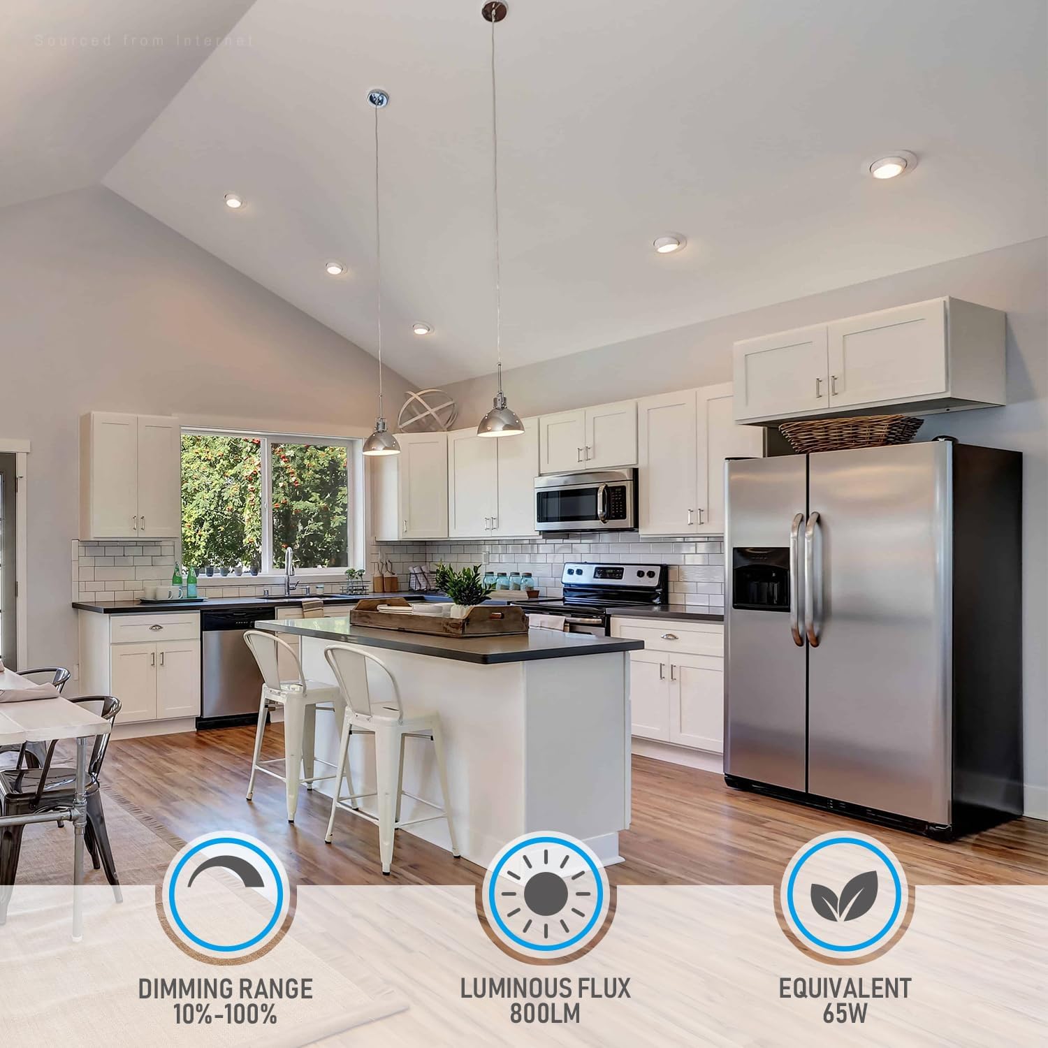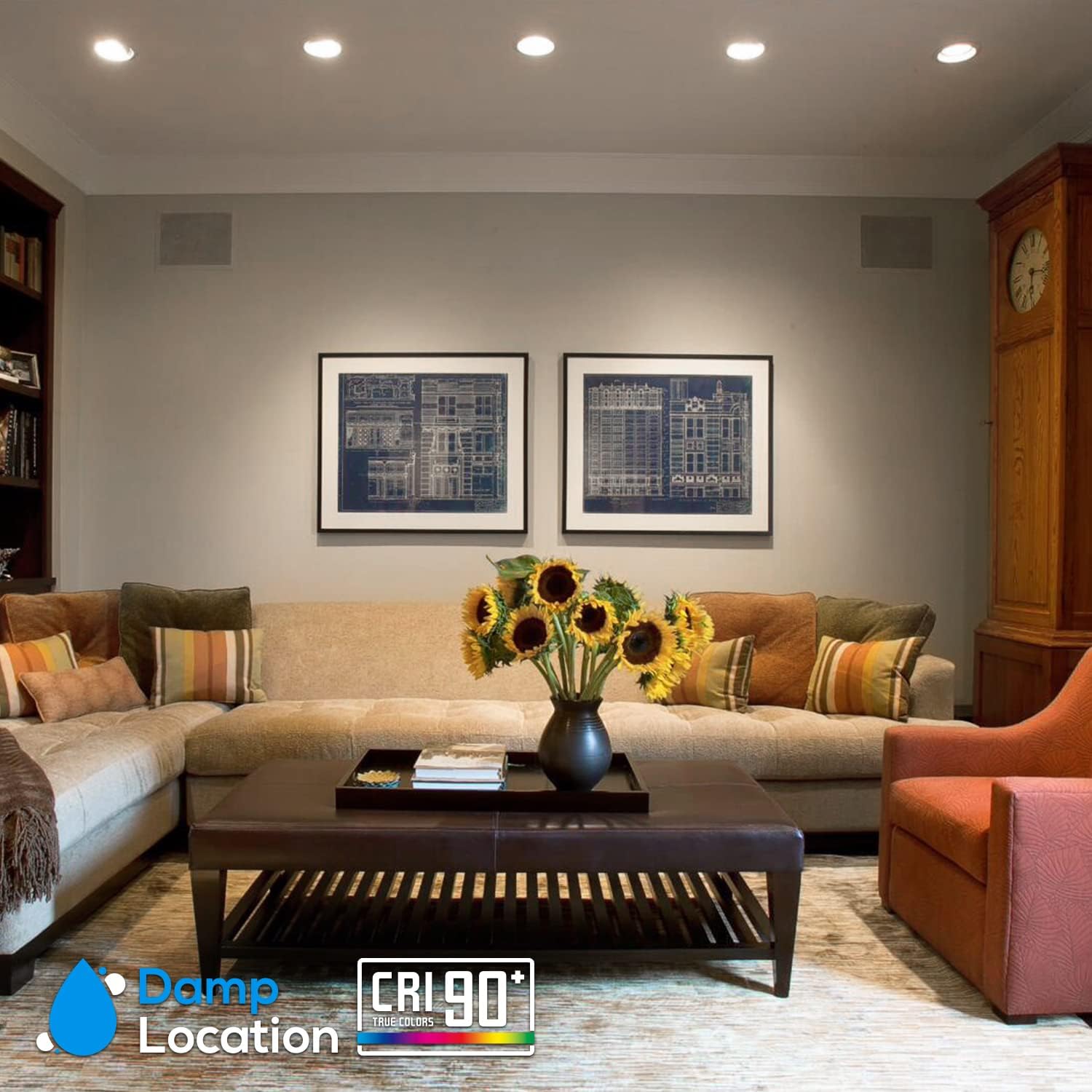 CRI90 & 10%-100% Dimmable: The dimmable recessed light is perfect for highlighted illumination like TV background walls, artworks, and more. Its amazing color accuracy and brightness control provide a vivid and clear display of every color and detail of objects