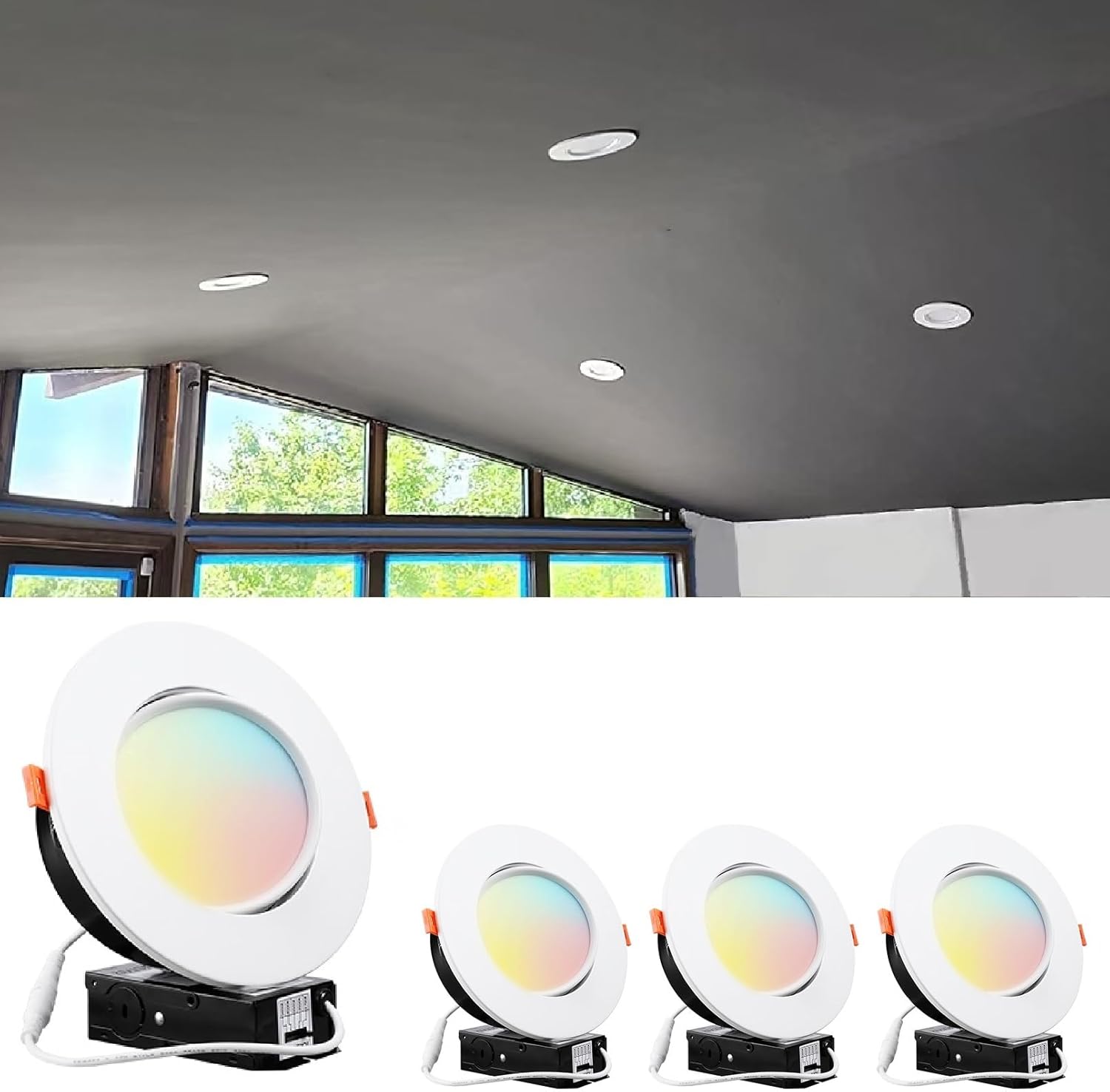 TORCHSTAR 6 Inch 5CCT Gimbal LED Recessed Lighting with Junction Box Dimmable, 2700K/3000K/3500K/4000K/5000K Selectable, Adjustable Recessed Downlight, LED Retrofit Downlight, ETL, Pack of 4