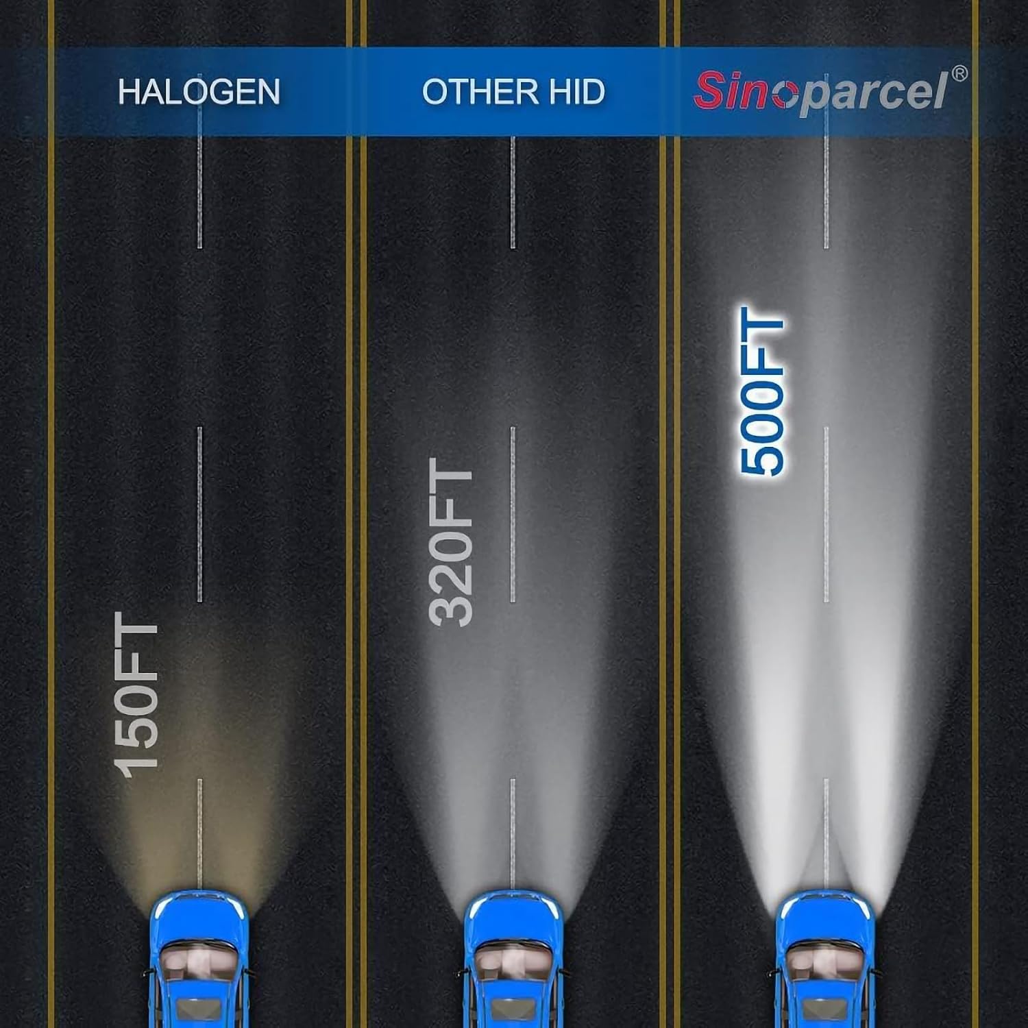 Produce una luz más de 3 veces que la bombilla halógena, el lumen de HID es de hasta 3600 lm mientras que el lumen de la lámpara halógena es de 800 lm, y menos vatios; El diseño científico puede reducir la posibilidad de fugas de lluvia y cortocircuitos