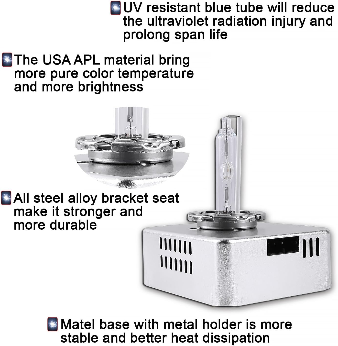 Soporte de por vida, 1 unidad empaquetada; Bombillas HID Sinoparcel D5S con balasto integrado, REEMPLAZO DIRECTO para su bombilla D5S/DS5 original, sin ninguna modificación (Si hay algún problema con el producto, contáctenos a través del Centro de Cuentas, le responderemos en 24 horas)