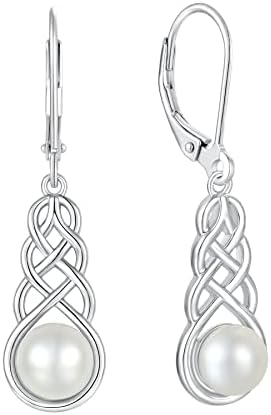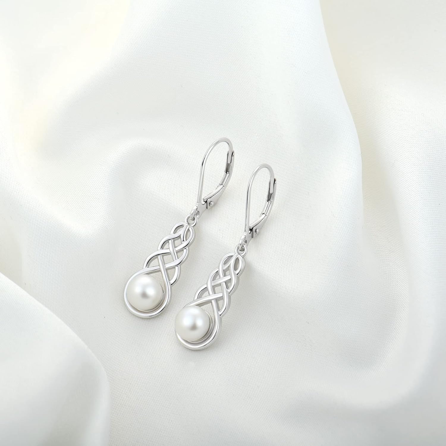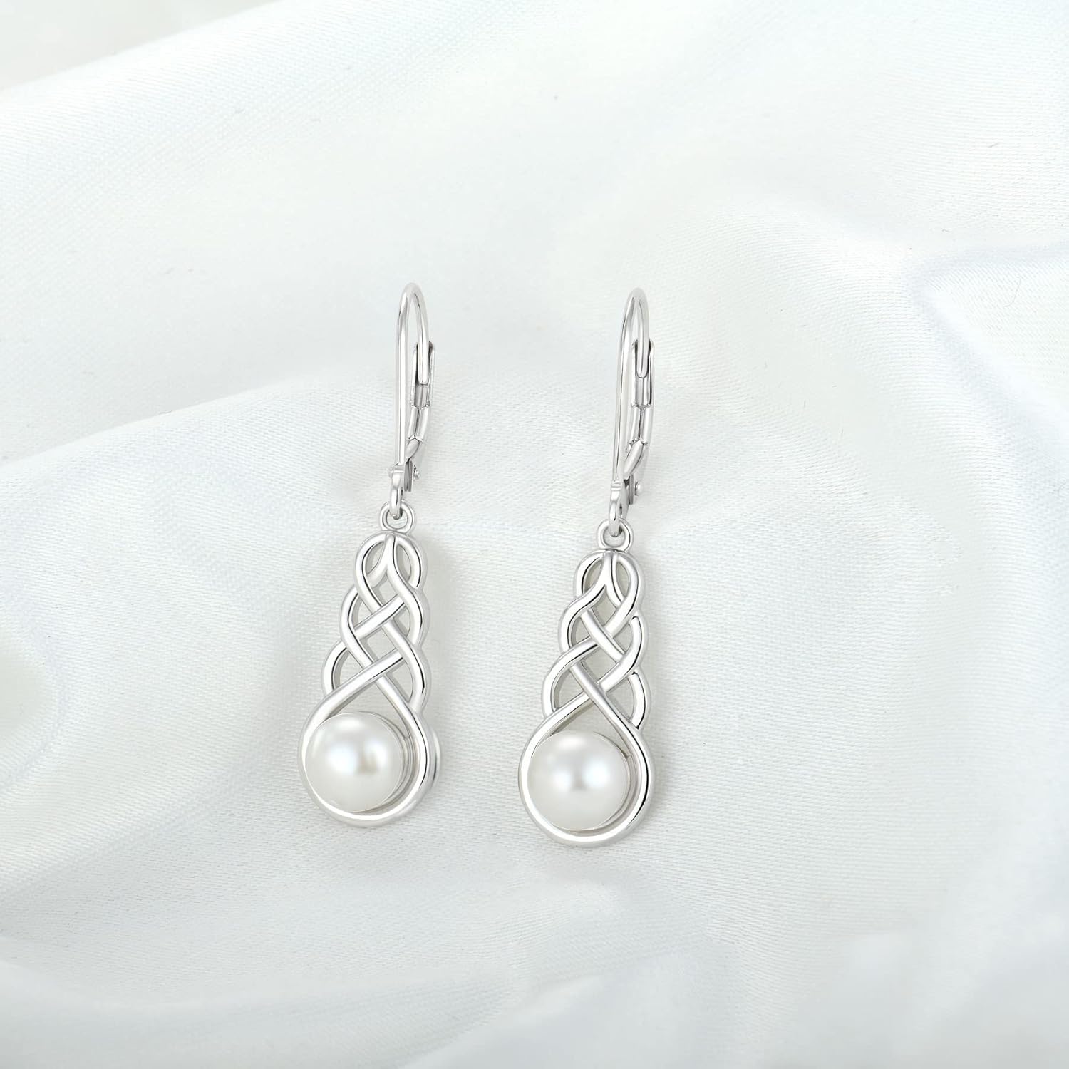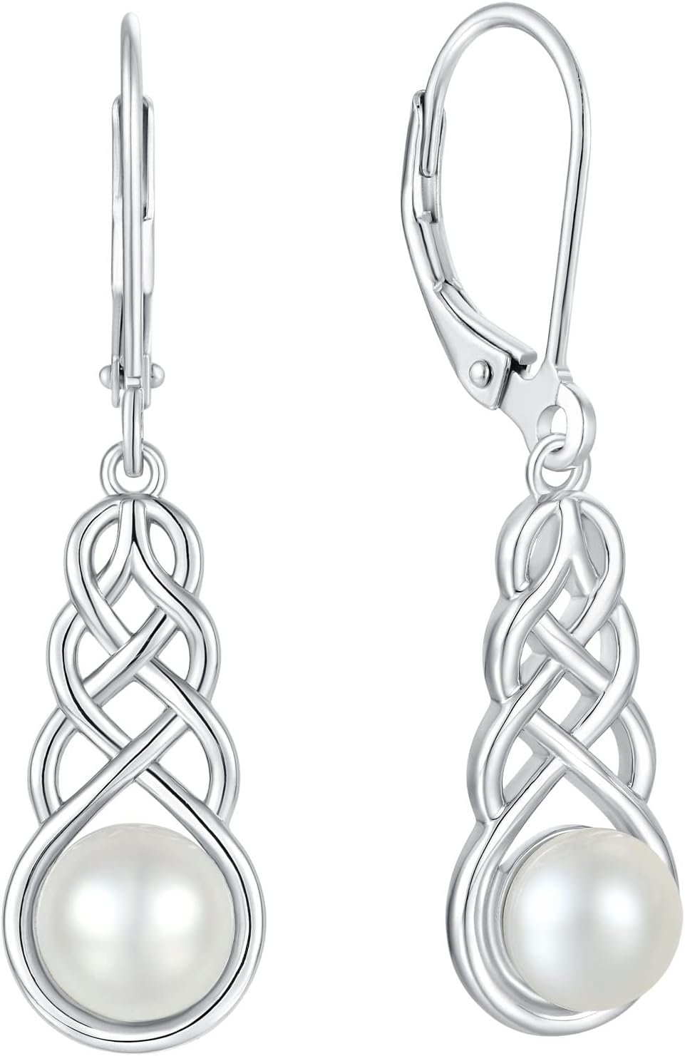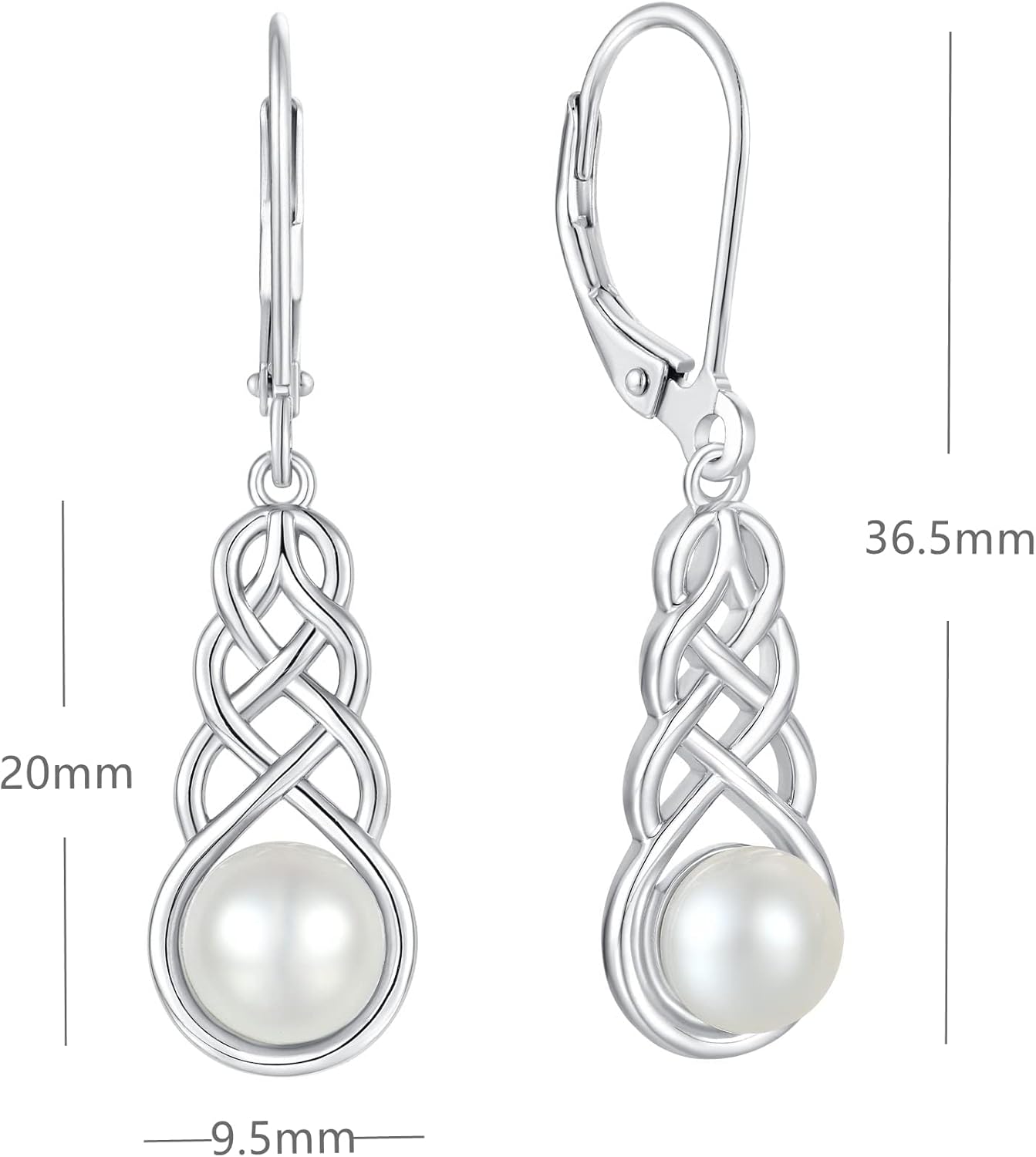 JO WISDOM Women Pearl Earrings 925 Sterling Silver Celtic Infinity Dangle & Drop Earrings with 8mm Freshwater Pearl Jewelry