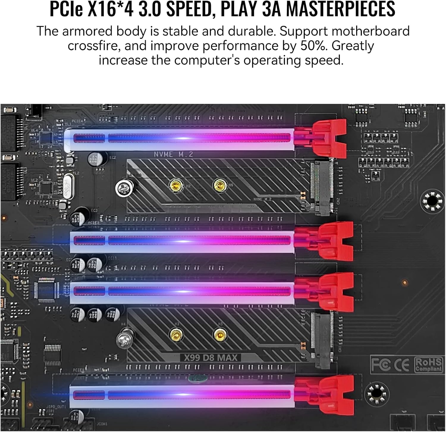 Stable Power Supply: 24pin+8pin+8pin power interface, using the 12-phase power supply to ensure stable power supply.(To ensure the normal operation of the intel x99 motherboard, please use a power supply greater than 500W.