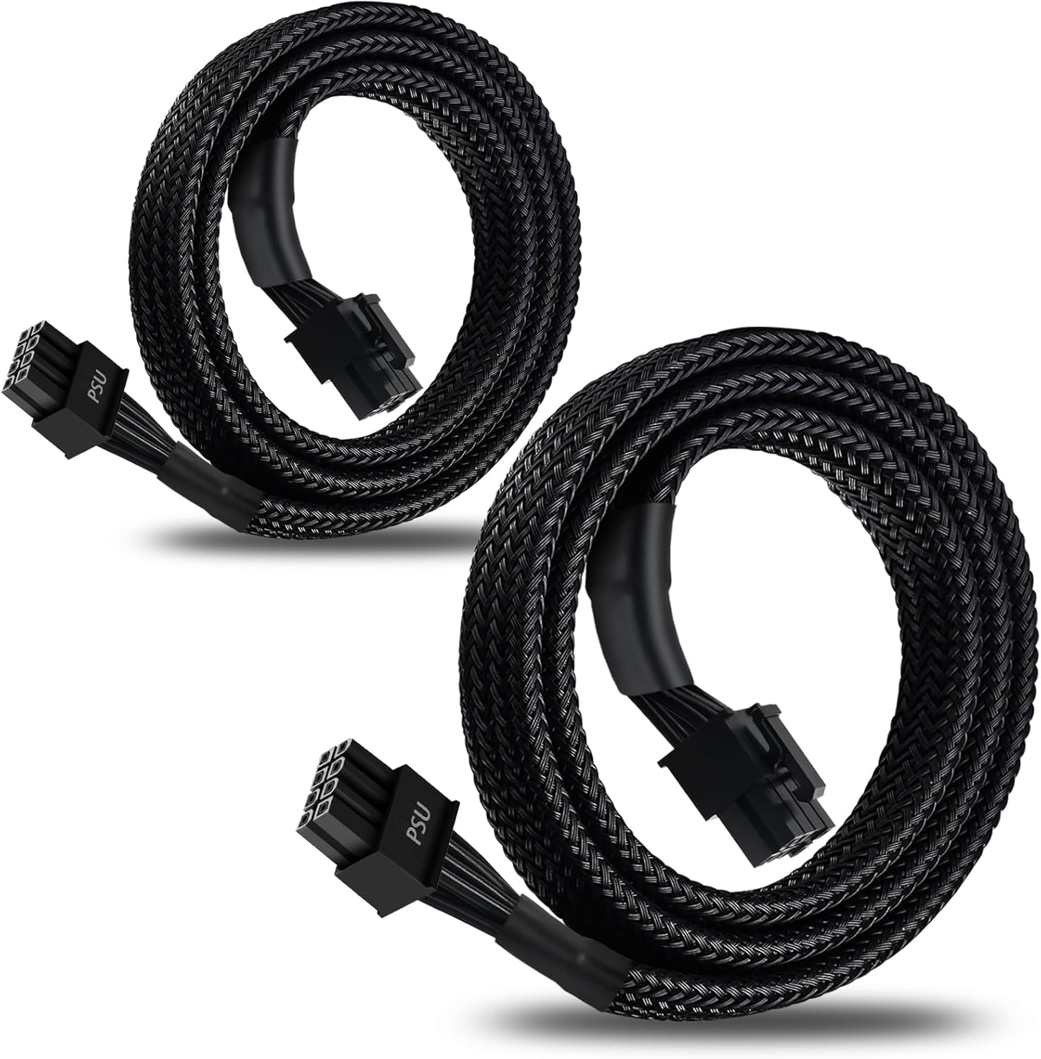 8 Pin PCIe Cable for EVGA Power Supply - 2-Pack, 25-inch (63cm) PCI Express Power Adapter, Male to 8 Pin (6+2) Male Sleeved