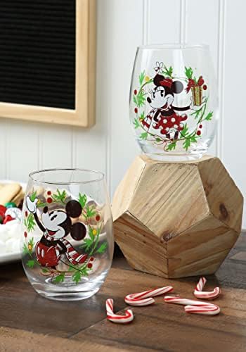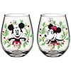Silver Buffalo Disney Holiday Mickey Mouse & Minnie Mouse 20oz 2 Pc Stemless Glass Set Standard