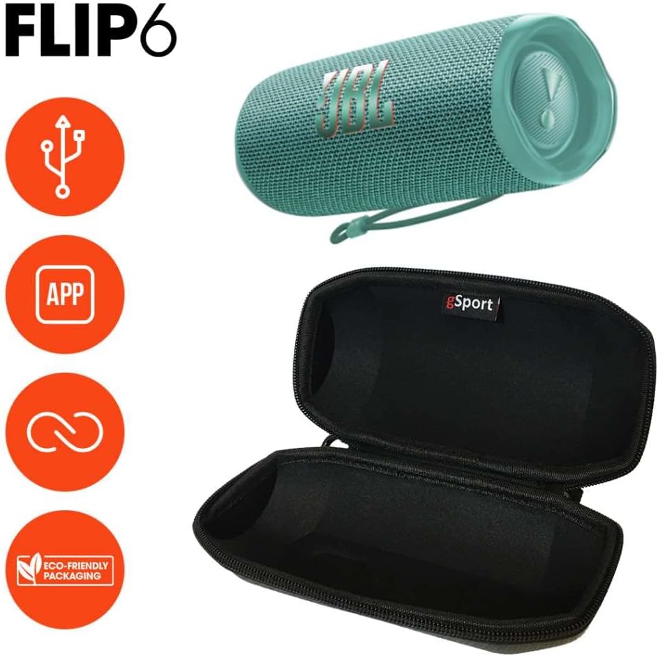 EXCLUSIVE BUNDLE - Includes (1) JBL FLIP 6 Portable Bluetooth Speaker and (1) gSport Carbon Fiber Hardshell Case