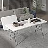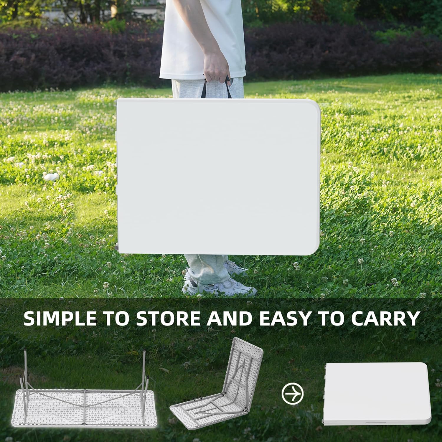 Allpop 6Ft Folding Table for Indoor Outdoor, Fold-in-Half Portable Plastic Dining Table with Carrying Handle for Picnic Party Camping, White