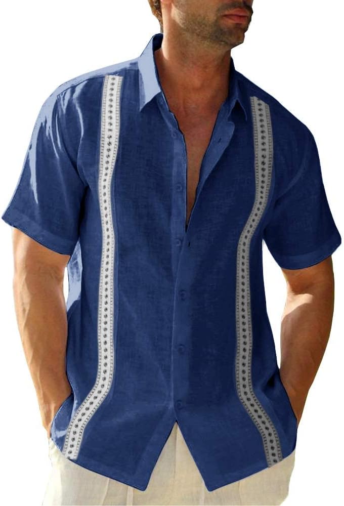 Hestenve Mens Short Sleeve Cuban Camp Guayabera Shirt Linen Cotton Hippie Beach Button Down Shirts