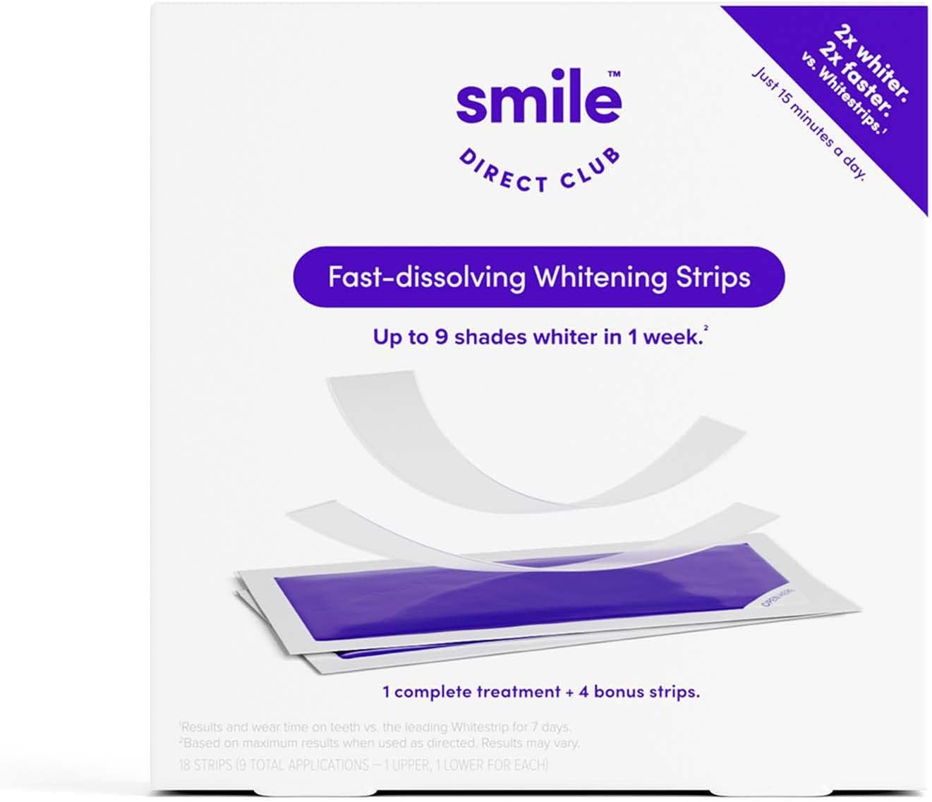 SmileDirectClub Fast Dissolving Teeth Whitening Strips - 18 Count - 2X Whiter Results, 2X Faster - Professional Strength Hydrogen Peroxide - Pain Free and Enamel Safe