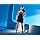 Su moda premium incluye un vestido de dos tonos, negro y plateado brillante con escote halter y tacones metálicos.
