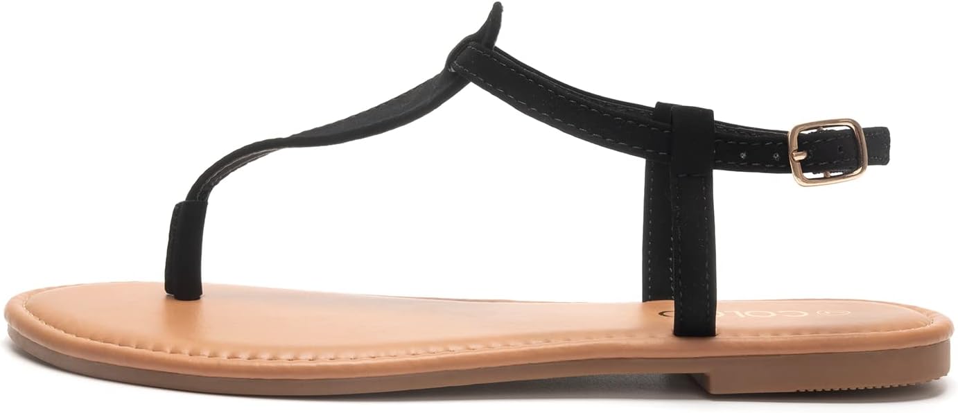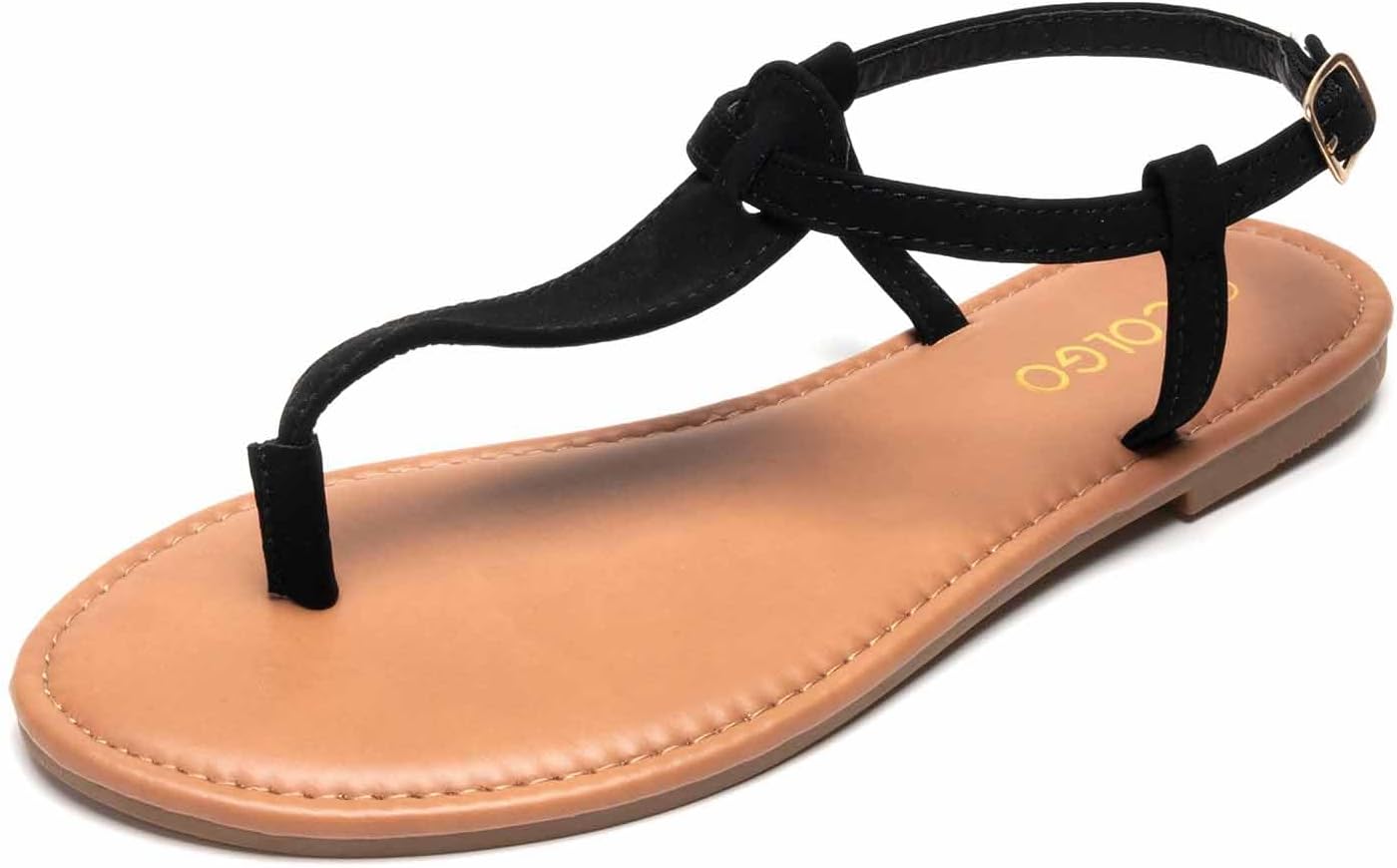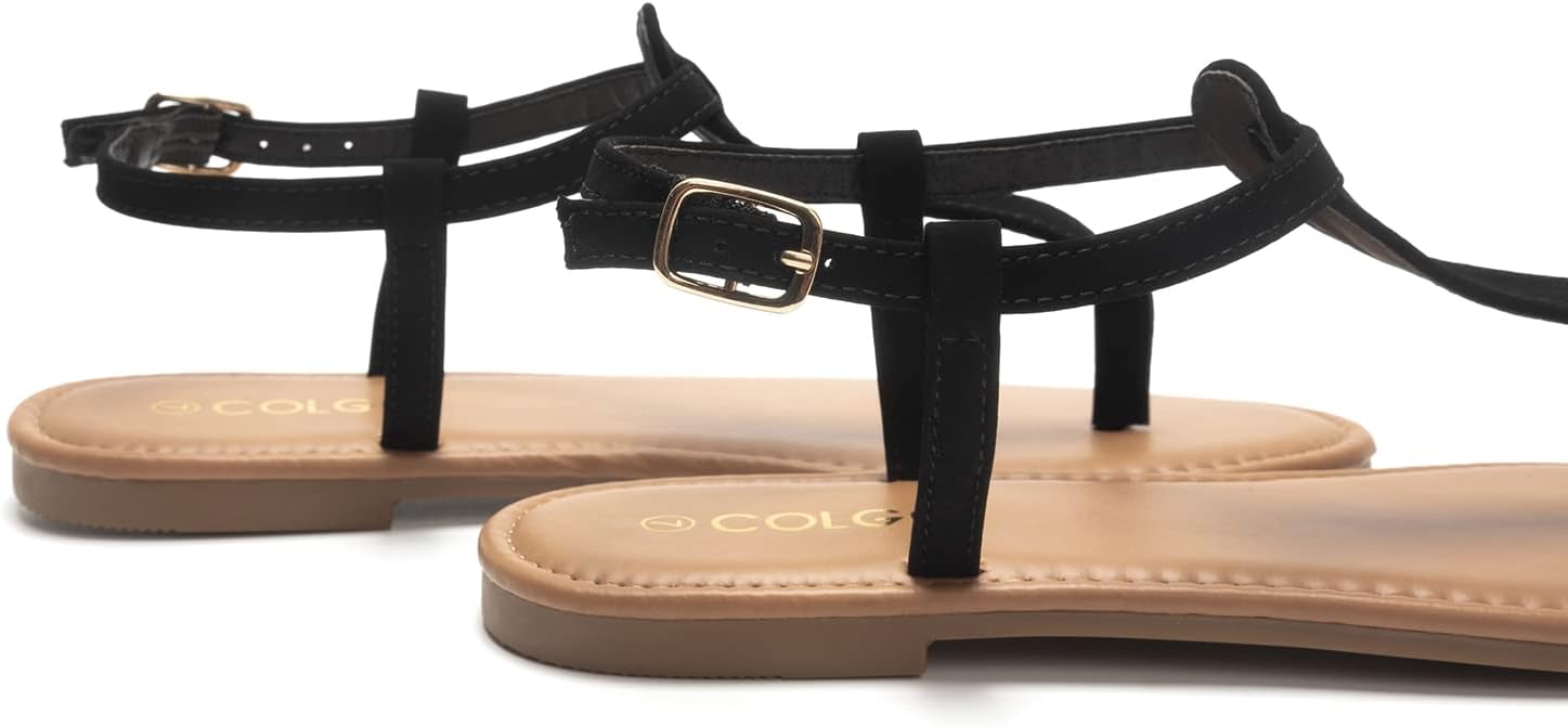 Colgo Thong Flat Sandals, Casual Women T-Strap Dress Sandals with Adjustable Ankle Buckle for Summer Wedding