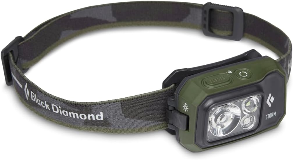 BLACK DIAMOND Storm 450 LED Headlamp, Waterproof and Dimmable Battery Powered Headlamp for Camping, Hiking, Hunting, Running, Work with Red Light Headlamp Mode, Dark Olive