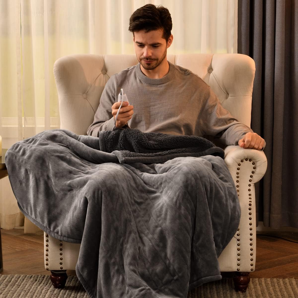 [Premium Dual-Sided Material] The 50"x 60" heated blanket is made of velvet & sherpa that is comparatively thin and breathable. Strictly tested and is free from deformation, shedding, pilling, and fading. The double-sided materials gently wrap you in comfort and warmth during cold days.