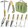 Garden Tool Set, WisaKey 9 Piece Stainless Steel Heavy Duty Gardening Hand Tools with Handle, Durable Garden Tool Bag, Gardening Gifts for Women and Men White Elephant Gifts