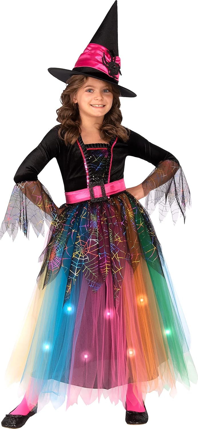 Vestido de Disfraz de Bruja Araña con Luces para Niñas de Rubies Girl's Forum Novelties para Fiestas Temáticas y Halloween, Como se Muestra, Mediano