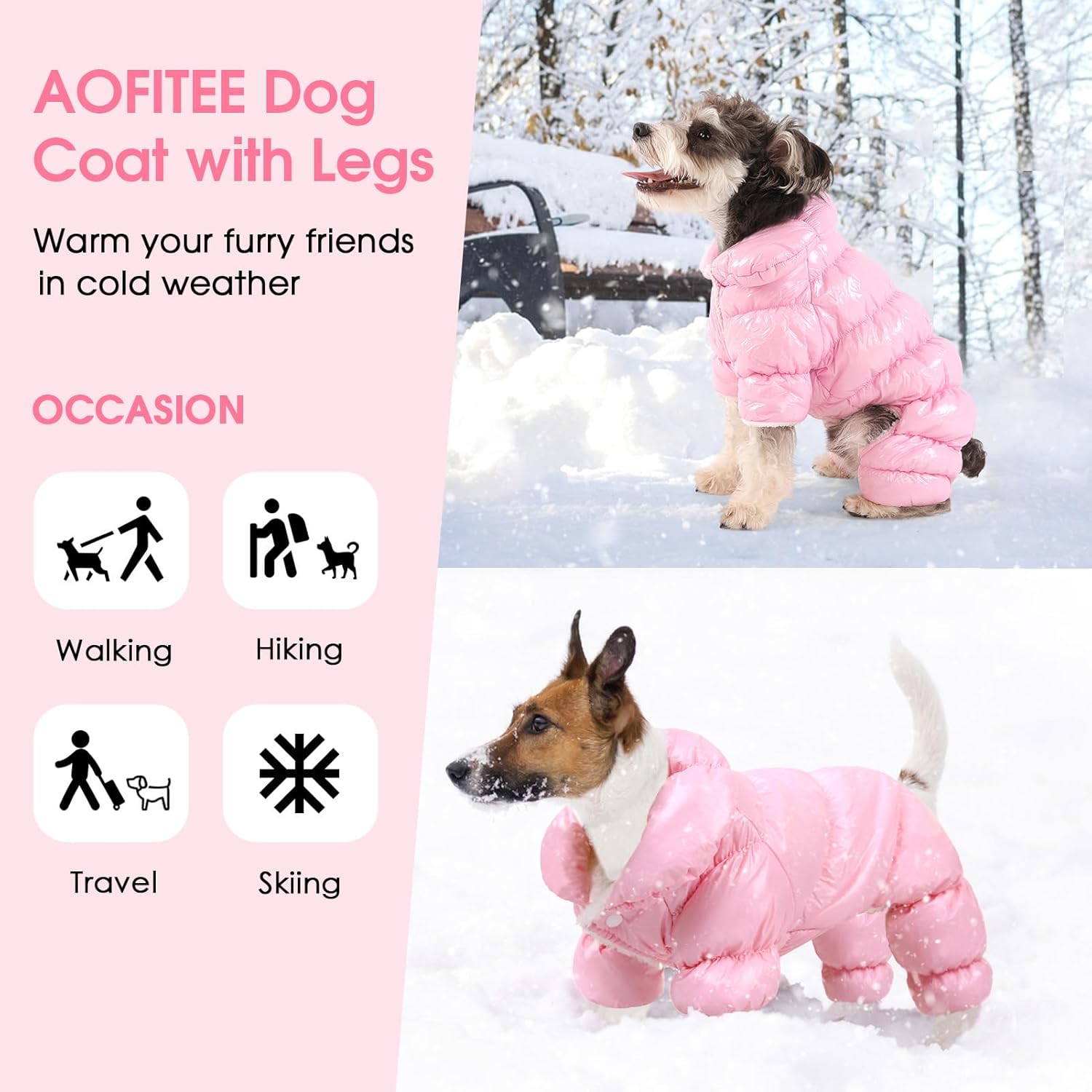 AOFITEE Dog Coat, Waterproof Dog Jacket, Fullbody Dogs Winter Coat Snowsuit, Windproof Puppy Puffer Jacket Snow Suit with Legs, Pet Fleece Winter Vest, Cold Weather Coats for Small Dogs, Pink S