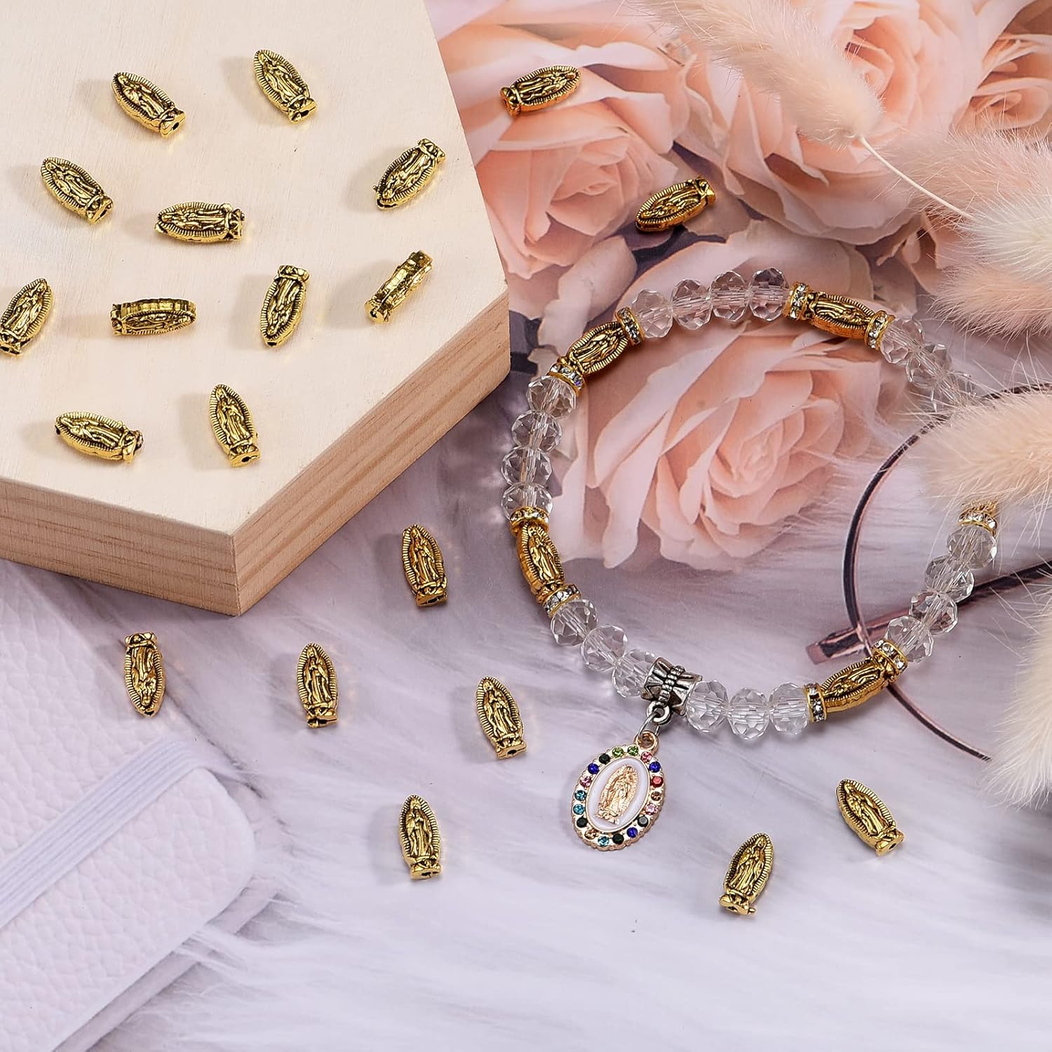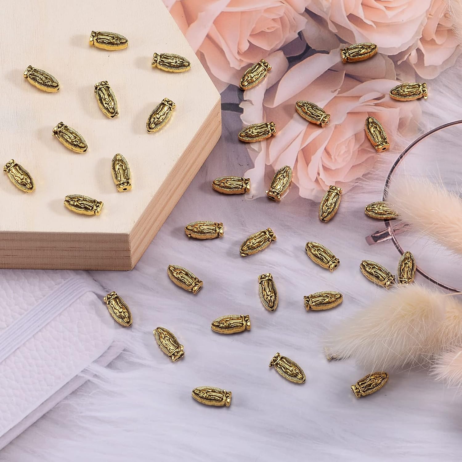 120Pcs Alloy Oval Double-sided Our Lady Religious Spacer Beads Jesus Virgin Mary Loose Beads Charm For Catholic Jewelry Making DIY Rosary Necklace Bracelet