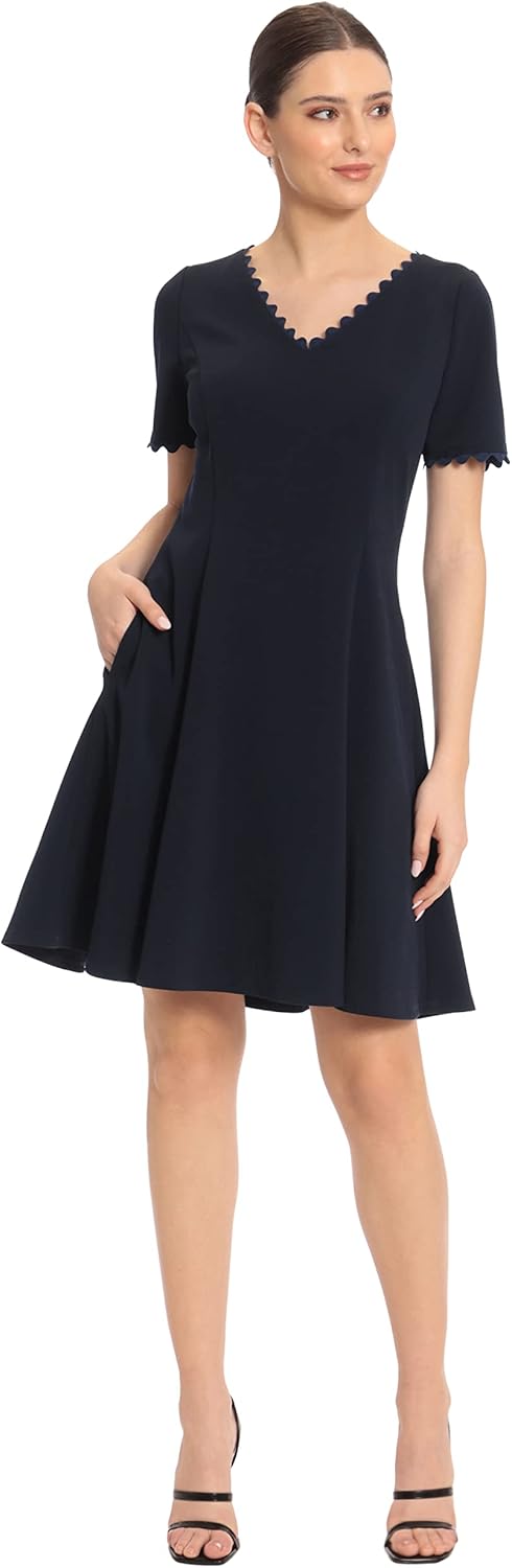Maggy London Women's Dresses Scallop Trim V-Neck and Short Sleeve Desk to Dinner Office Workwear Event Occasion Guest of