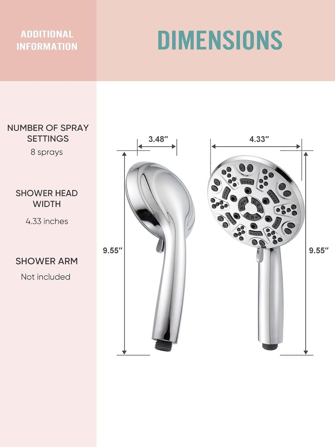 [8 Spray Modes] Cobbe handheld shower head is different from regular shower head as it comes with 8 spray modes, which gives you a different shower experience. To meet the needs of the whole family at the same time you just need to switch between them at the touch of a button.