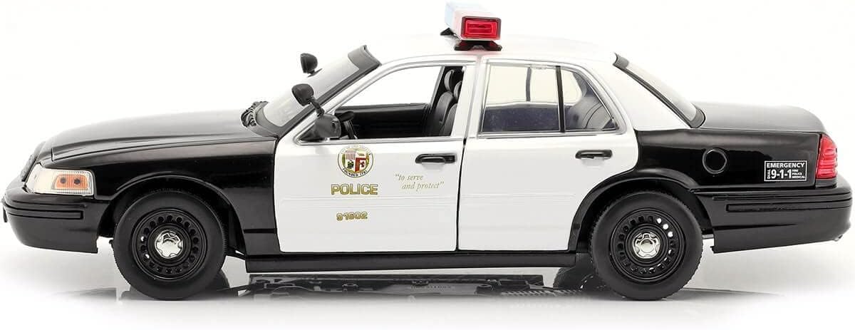 Modelo en Miniatura 1/18 Crown Victoria Police Interceptor 2001 Negro y Blanco del Departamento de Policía de Los Ángeles (LAPD) en la Película de 2011, Greenlight 13610