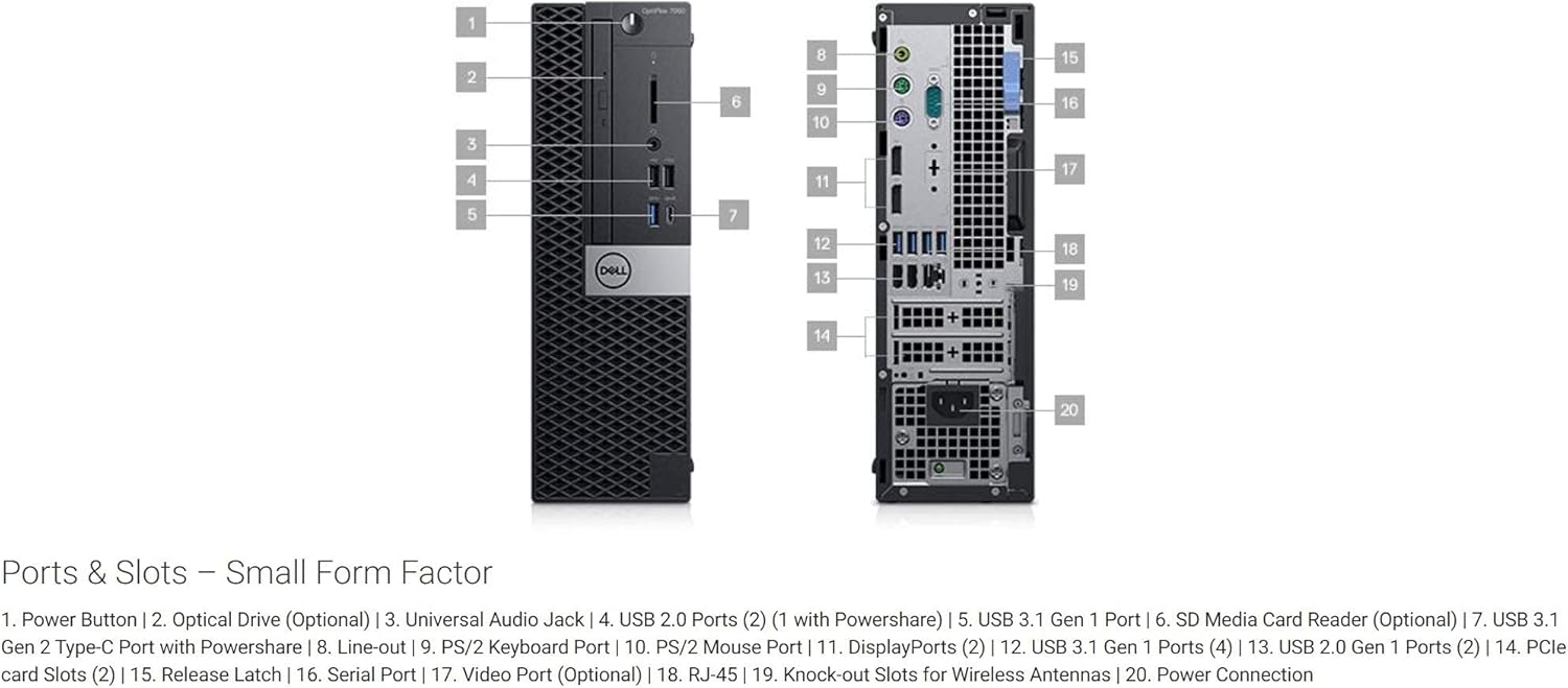 Computadora de sobremesa Dell OptiPlex 7070 SFF Intel Core i7-9700, 3 GHz, 8 núcleos, memoria DDR4 de 16 GB, SSD NVMe de 1 TB, Windows 10 Pro (renovada)