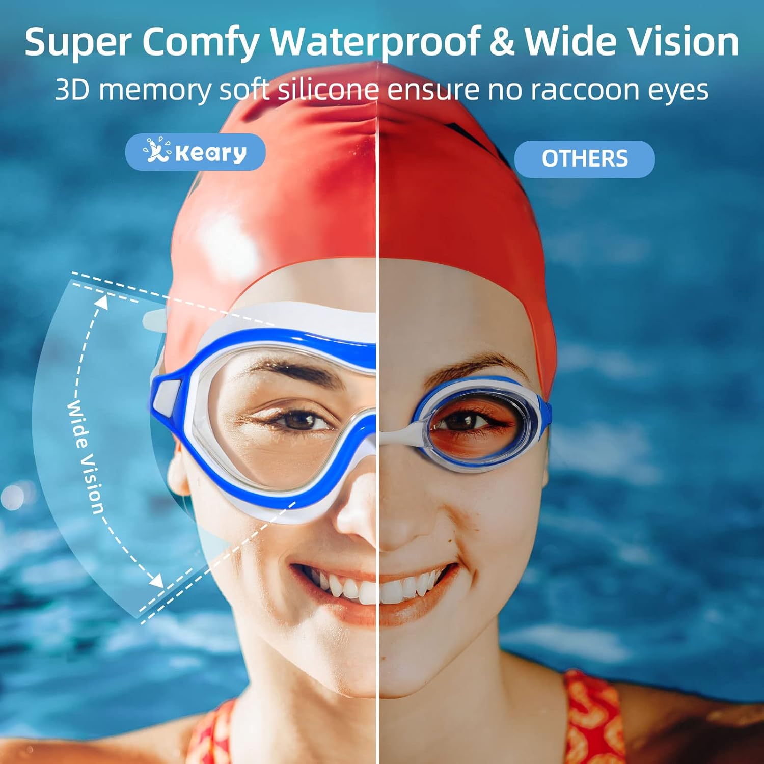 Keary 2 Pack Swim goggles for Adult Youth with Soft Silicone Gasket, Anti-fog UV Protection No Leak Clear Vision Pool Goggles