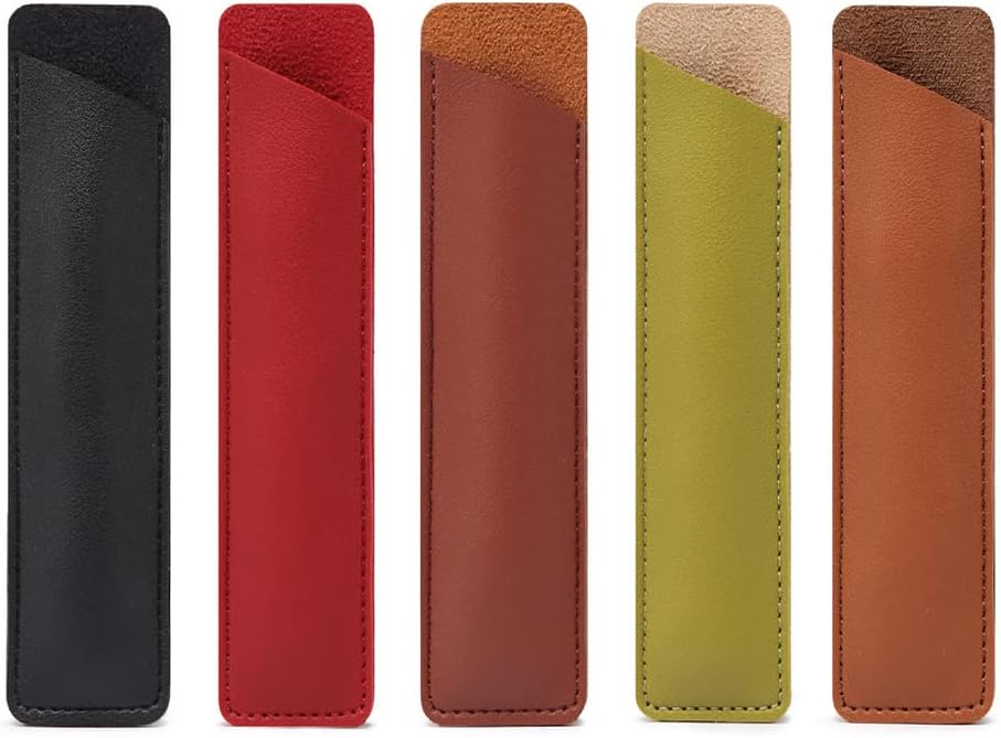 NA Set of 5 PU Leather Pen Case Holder for Single, Vintage Handmade Fountain Pen Pouch, Protective Sleeve Cover for Pencil, Ballpoint Pen (Black, Red, Brown, Dark Brown, Green)