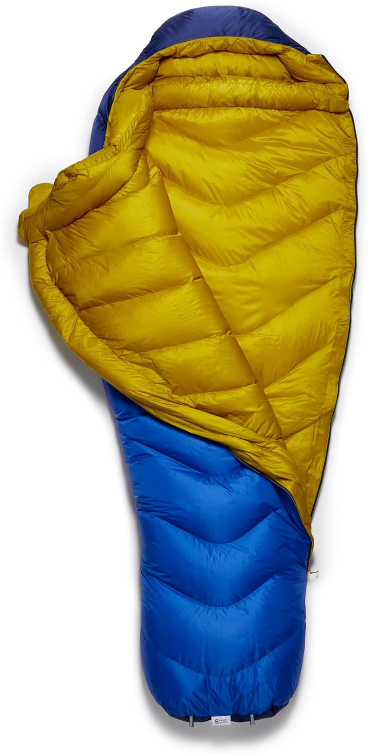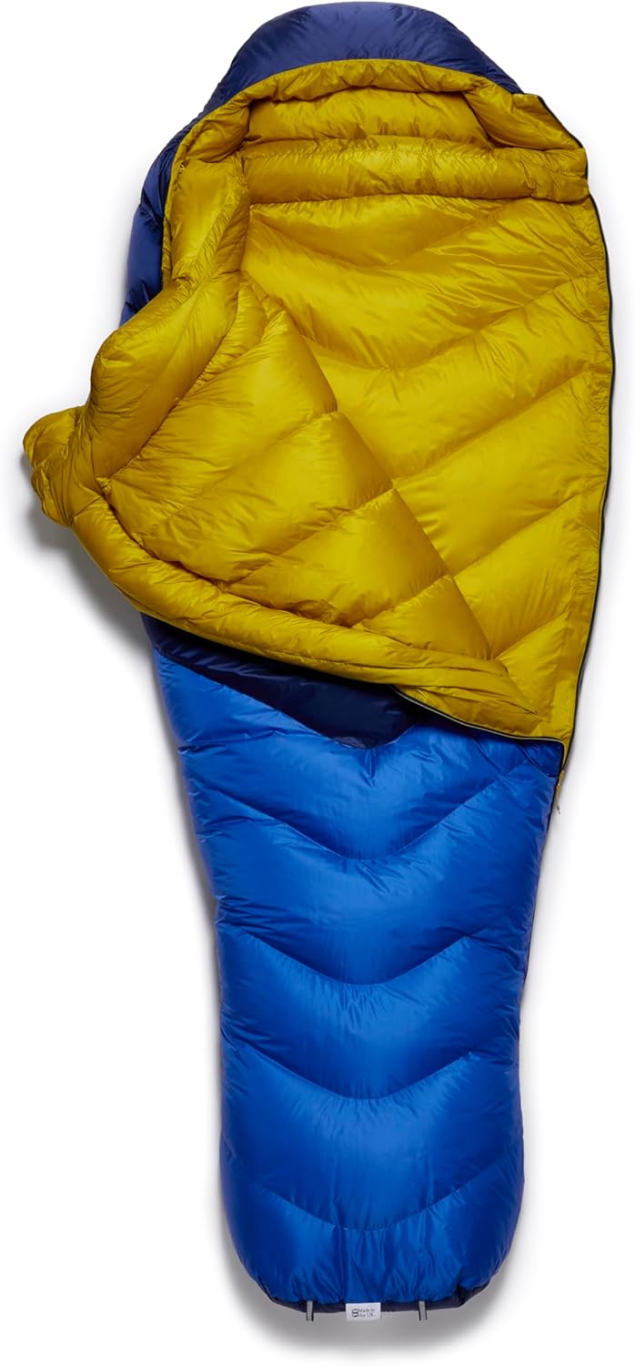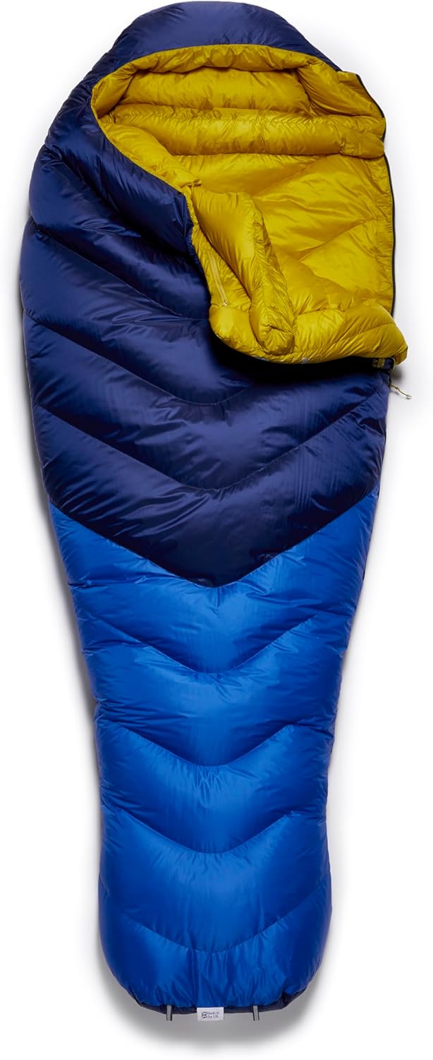 Specs | [Best Use] Mountaineering, Trekking; [Weight] 33.5oz; [Packed Size] 15.7 x 10.2in; [Rab Sleep Limit] 10°F (-12°C); [Dimensions] (Shoulder Girth) 61.4in, (Hip Girth) 52.8in, (Foot Girth) 40.2in, (Max User Height) 66.9in