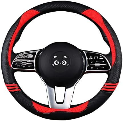 Iwantit® Steering Wheel Cover, Carbon Fiber&Perforated Pu Leather with Anti-Slip Rubber Ring, Steering Wheel Protector, Universal Fit 14.5-15 inches for Cars,SUV (Passion Red)
