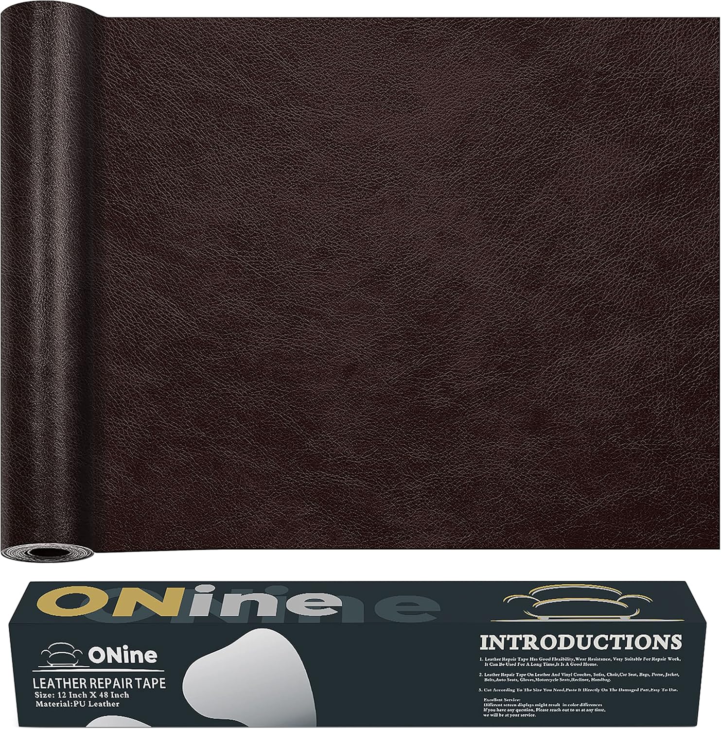 Reparación de Cuero ONine, Cinta de Reparación de Cuero, 12 x 48 pulgadas para Reparación de Muebles, Kit de Reparación de Vinilo, Parche para Sofás, para Muebles, Asientos de Coches (Marrón Oscuro)