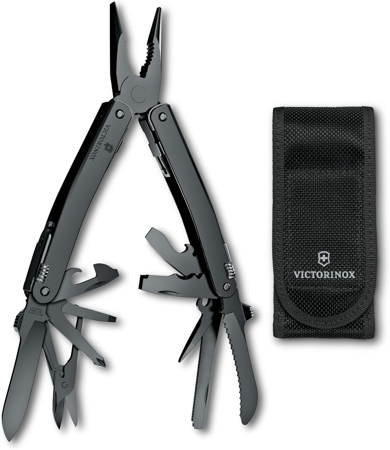 Victorinox Swiss Tool Spirit MXBS Cuerpo Suizo, Multiherramienta Suizo Hecho con 24 Funciones, Gran Cuchillo, Pinzas y Cortacables - Negro con Bolsa de Nylon