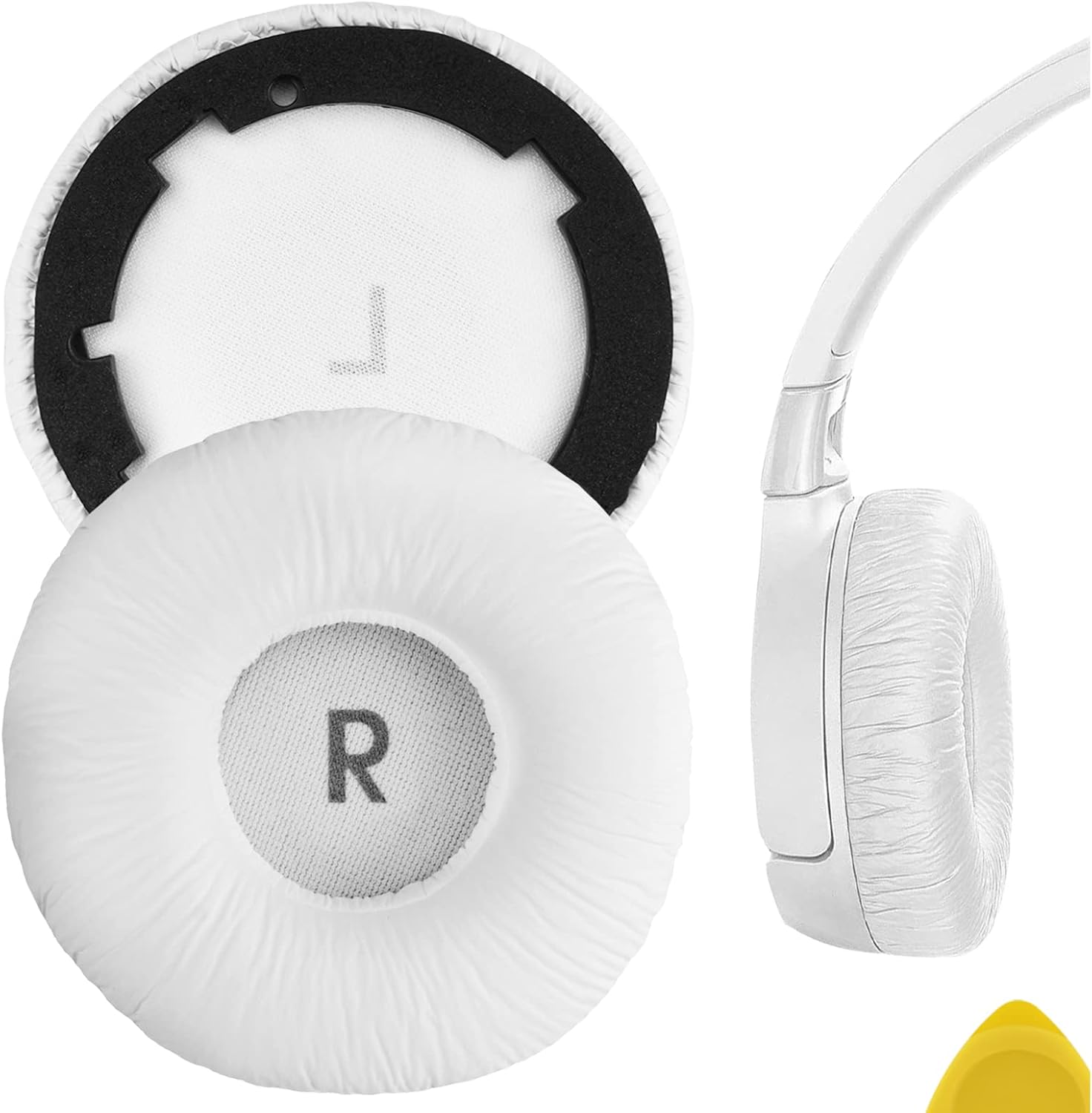 Geekria QuickFit Leatherette Replacement Ear Pads for JBL Tune 600 (T600BTNC, 600BTNC)/ 660 (T660NC, 660NC)/ 670 (T670NC, 670NC) Headphones Ear Cushions, Repair Parts (White)