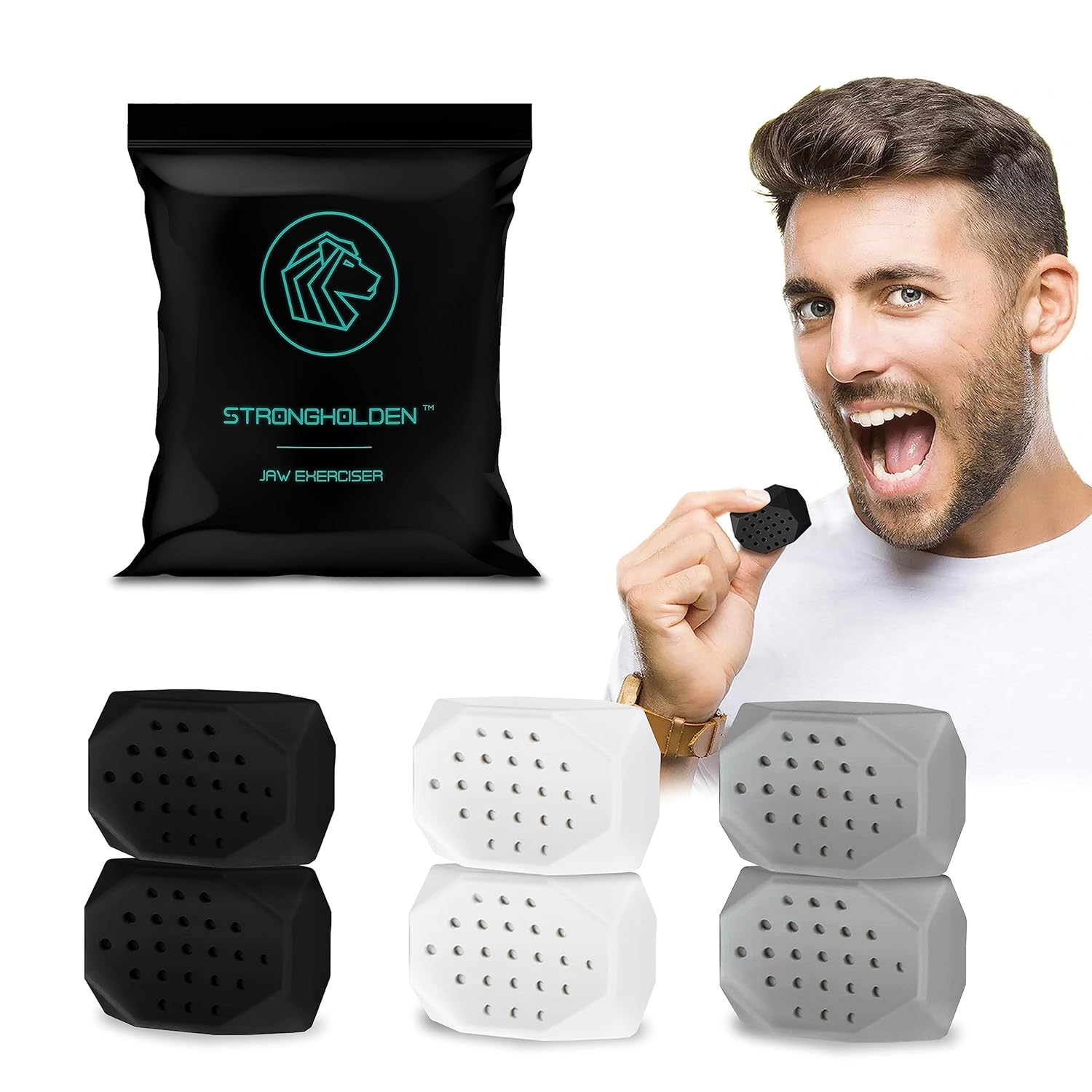 Ejercicior de mandíbula para hombres y mujeres - 3 niveles (6 piezas) Tabletas de ejercicio de mandíbula de silicona para usuarios principiantes, intermedios y avanzados - Tonificador de mandíbula para hombres y mujeres, Jawstyle y entrenador de mandíbula (3 niveles - Básico)