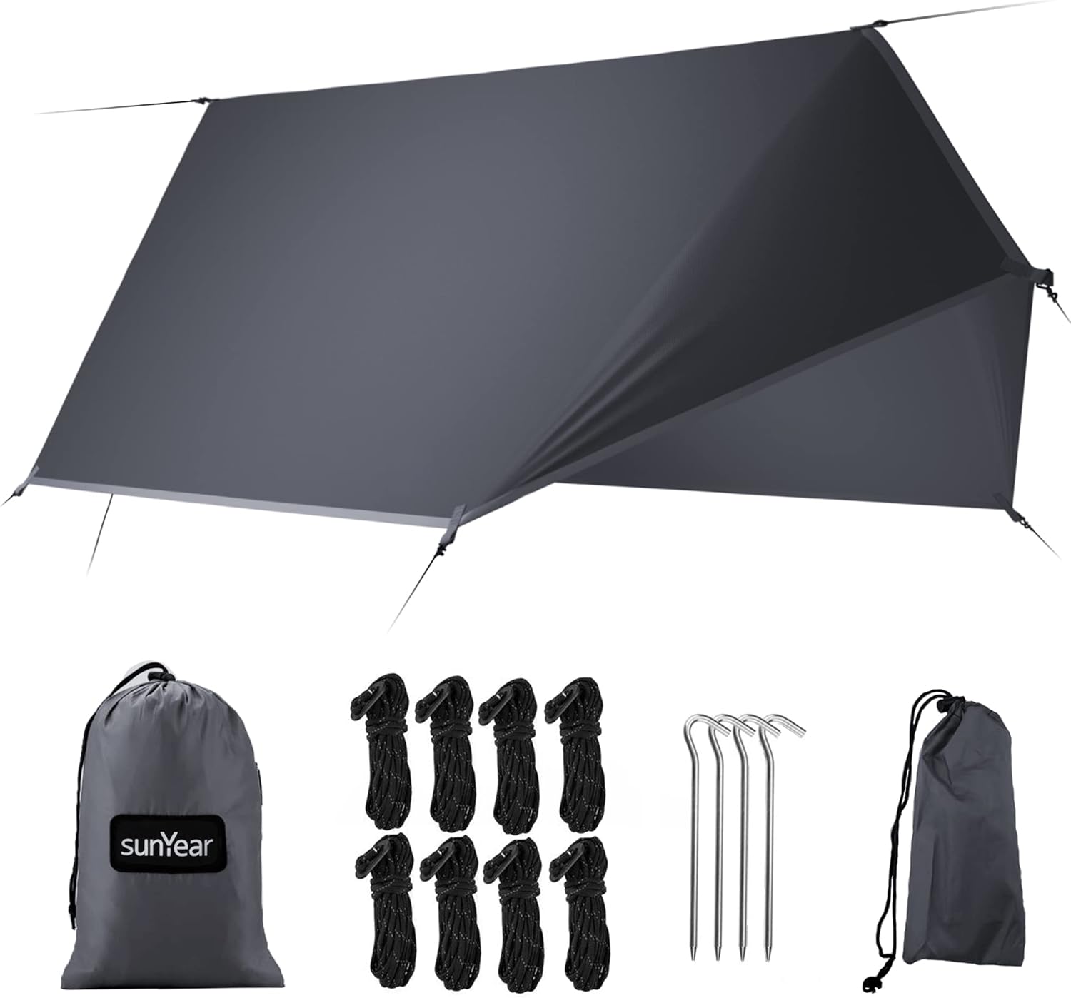 Stop Wind&Rain From Side:Sunyear unique small door design 14" long in the head of the camping tarp, to offer a safer and tougher shelter and stop the rain/snow falling into hammock from side,perfect protect your privacy and keep you fully dry and comfortable