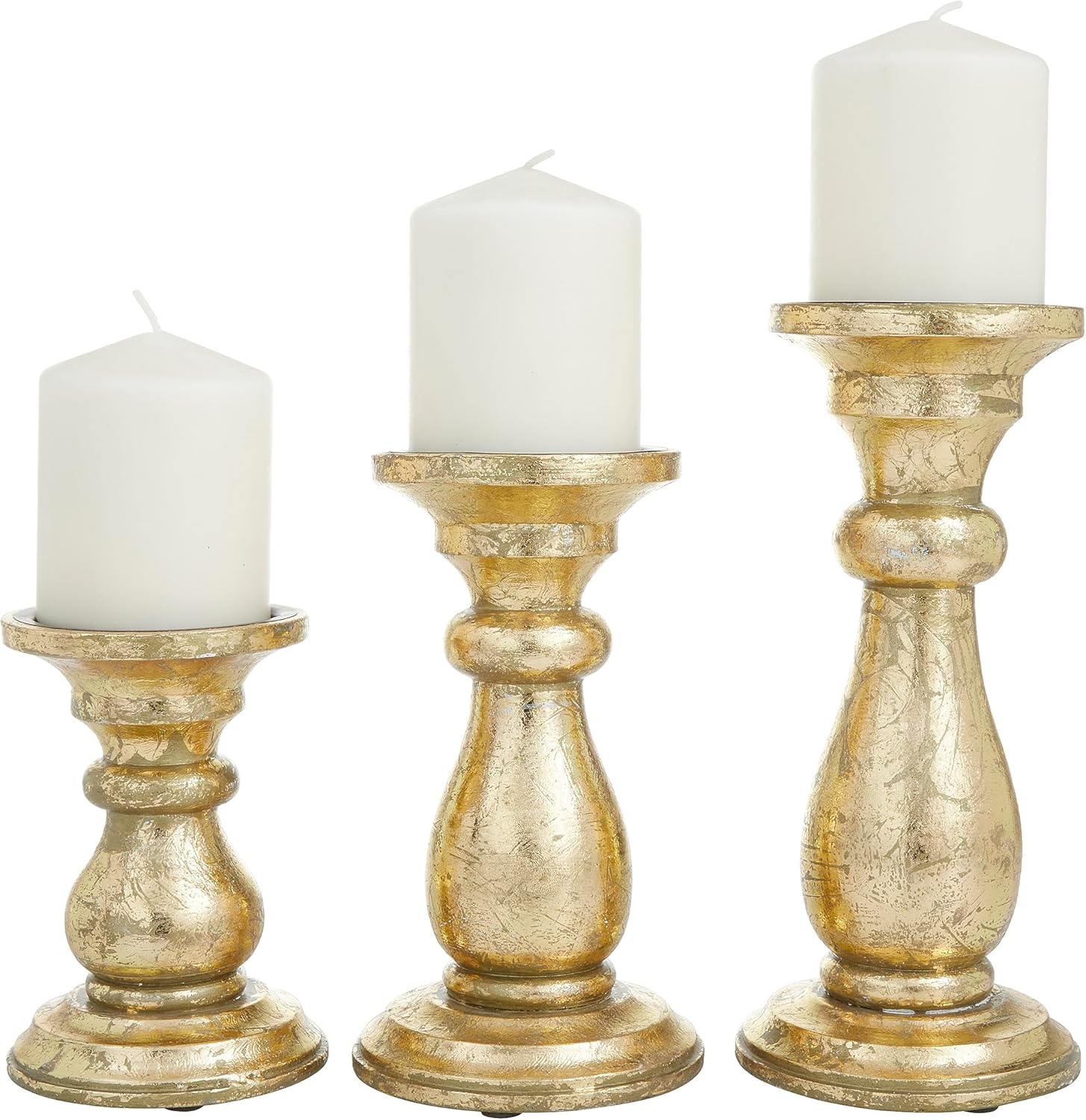 Deco 79 Mango Wood Decorative Candle Holder Turned Style Pillar Candle Stand, Set of 3 Candlestick Holder 10", 8", 6"H, Gold
