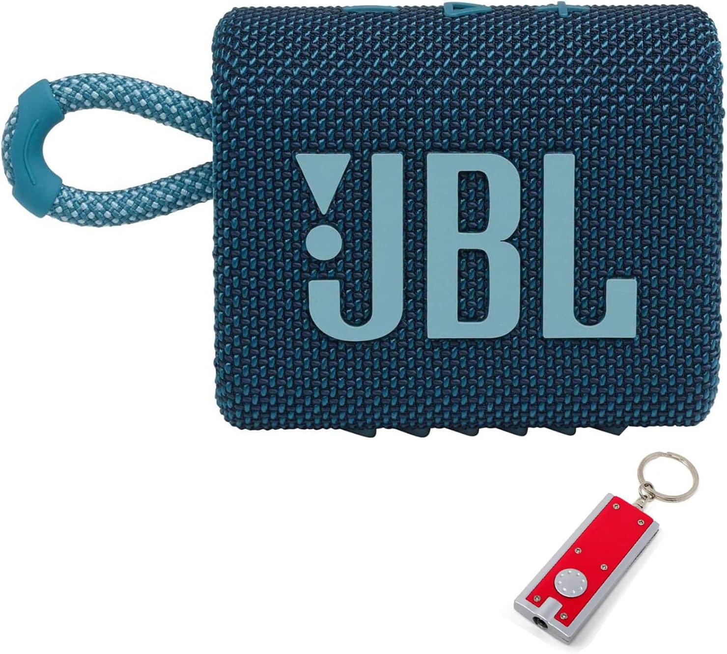 JBL Go 3 - Altavoz Bluetooth portátil, batería incorporada, función impermeable y a prueba de polvo JBLGO3BLUAM, llavero LED incluido - Azul