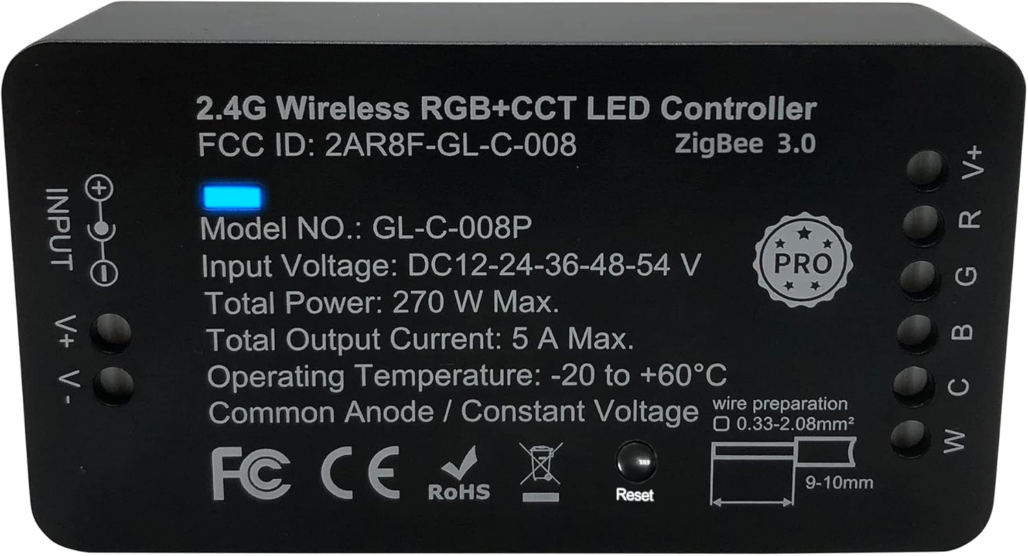 GIDEALED Zigbee 3.0 LED Controller Pro Work with ZigBee Hub Bridge Echo Plus for RGBW RGBWW RGBCCT LED Light Strip, Support Smart APP/Alexa Voice Control Brightness 1%~100%, Adjust Color RGB WW CW