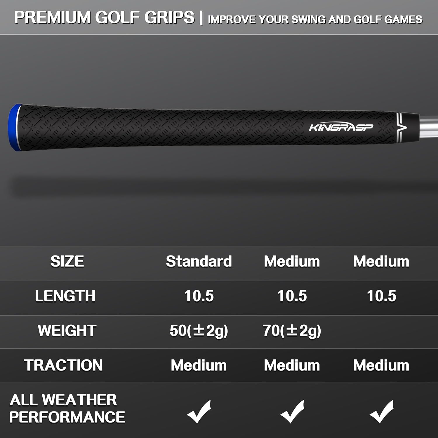 【Golf Gripsp Spec】Standard / Midsize , Core Size : 0.600" , Grip Length:10.50" , Weight : 51±3g / 68±3g , Colors:6 Colors Optional. Package Include:13 x KINGRASP Multi Compound Golf Grips,