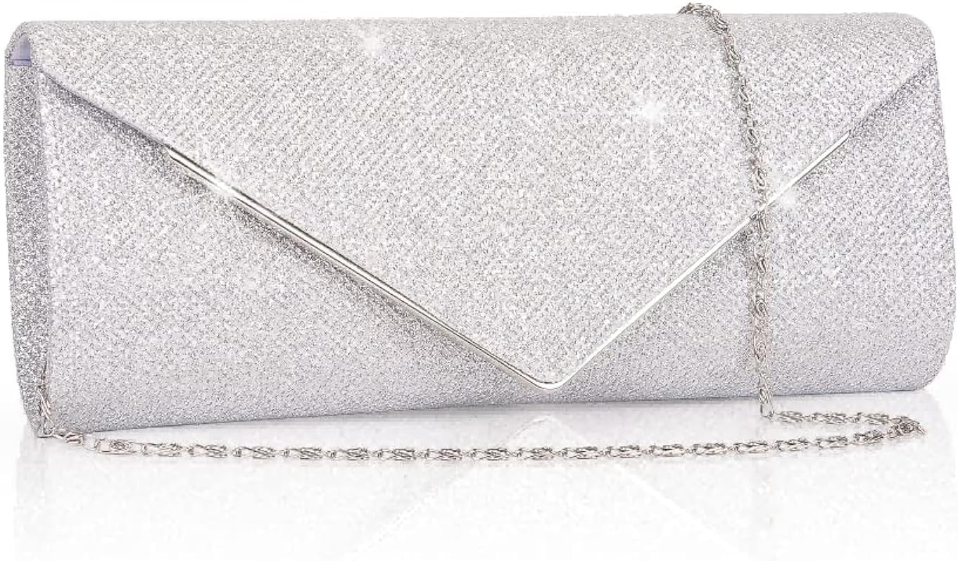 Larcenciel Clutch Purses for Women, Sparkling Envelope Evening Bag with Detachable Chain