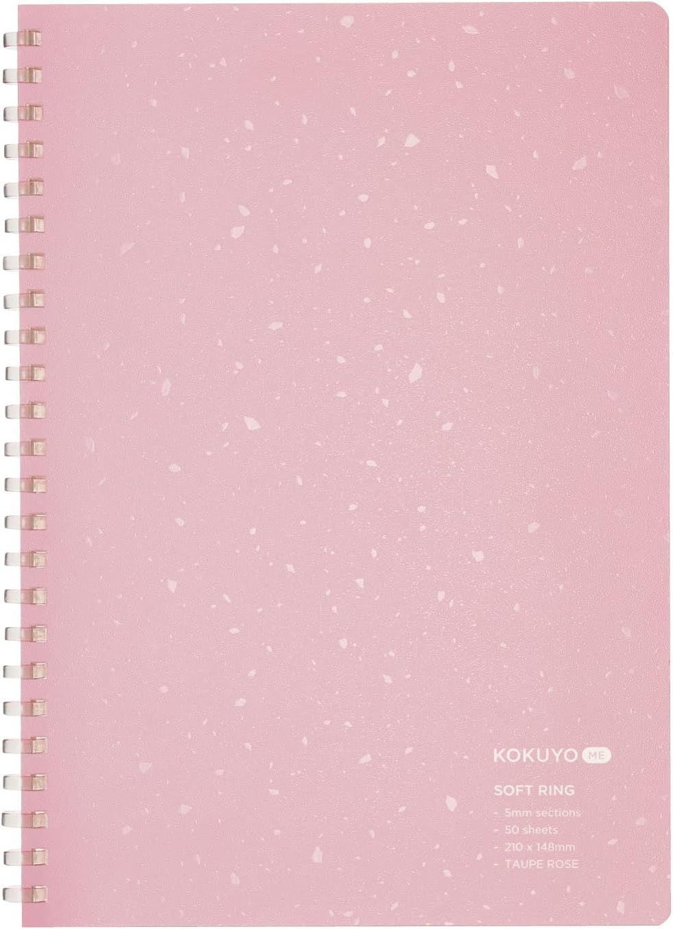 KOKUYO ME Graph Spiral Journal Notebook, A5 Soft Ring 5 mm Grid Paper Notebook with 50 Smooth Sheets, 5.8'' x 8.3'' Cute Small Journaling Notebook, Taupe Rose, Japan Import. (KME-SR931S5MV)