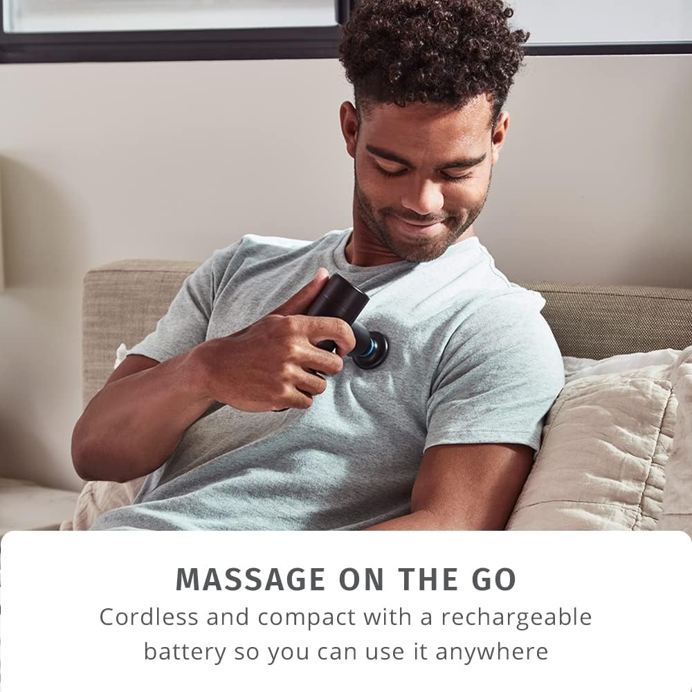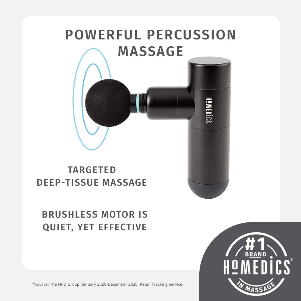 Powerful Percussion Massage: Compact design delivers a targeted deep-tissue massage to help relieve common muscle pain and stiffness; brushless motor is quiet, yet effective